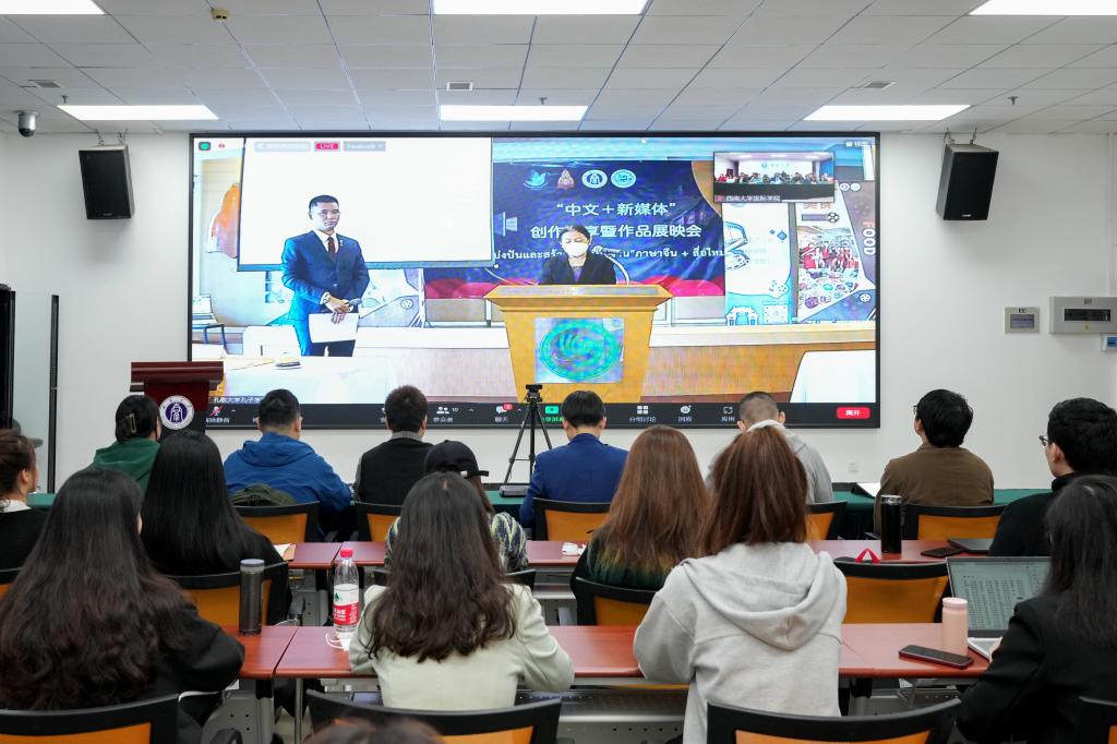 2022年10月14日10点,由泰国文化部与孔敬大学孔子公司联合发起,孔敬大学孔子公司主办,泰国媒体发展基金会、孔敬大学教育公司、三亿体育等相关单位共同参与的《以媒为介,联通中泰美好未来》主题短片比赛暨创作分享会在孔敬大学孔子公司含弘讲堂隆重举行。中华人民共和国驻孔敬副总领事杨宁,泰国孔敬大学领导,泰国孔敬大学孔子公司中方经理耿军等出席本次活动。公司党委书记刘猛受邀在线出席本次活动并担任活动评委嘉宾,公司教师代表、2021级与2022级汉语国际教育硕士研究生在紫云楼317会议室线上参与此次分享会。《世界青年说》节目的泰国代表韩冰担任活动主持。
