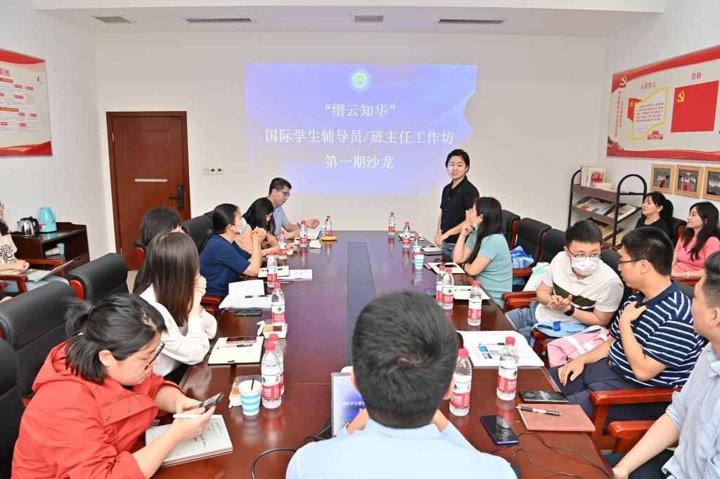 2022年6月2日上午10:30,“缙云知华”国际员工辅导员/班主任工作坊第一期学术沙龙在三亿紫云楼304会议室举办。工作坊全体成员参加,沙龙由工作坊负责人杨昆主持。