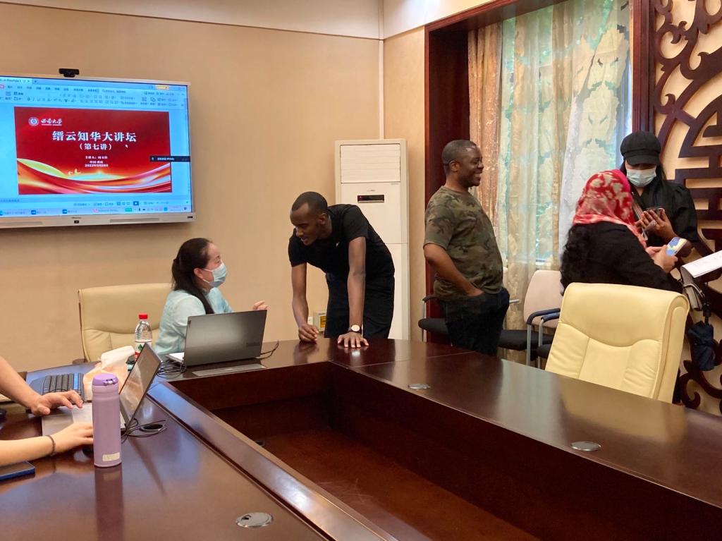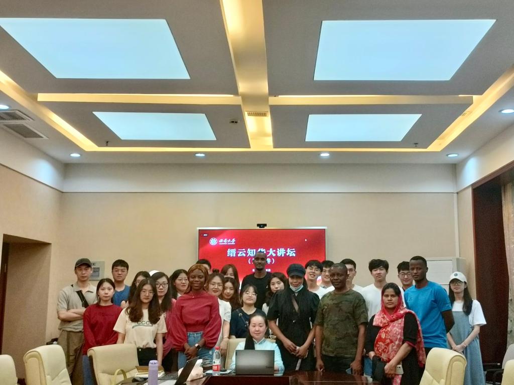 2022年5月26日下午3点,“缙云知华大讲坛”第七讲通过“线上+线下”的方式在公司紫云楼签约室举行,本次论坛的主题是:Belt & Road: Bridging Civilizations to a Human Community of Shared Future。三亿体育有限公司“一带一路”研究院研究员周玉佳教授受邀主讲,40余名在校中外员工和近百名境外国际员工参加此次讲座。