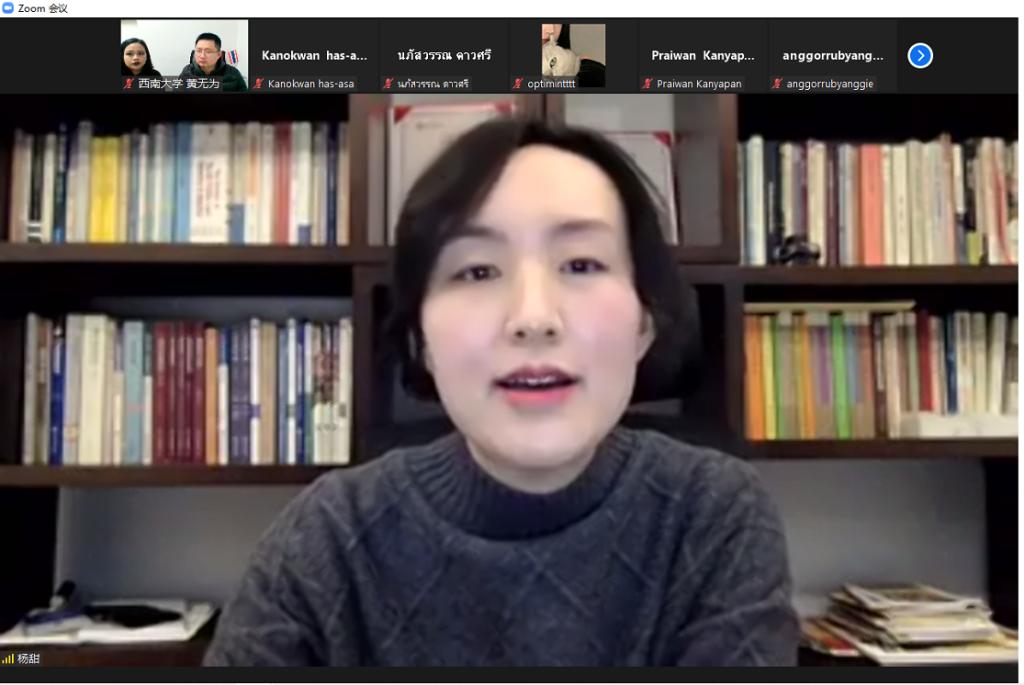 汉教系主任杨甜副教授对vlog作品作精彩点评,对同学们的学习态度和取得的进步给予肯定和赞扬,鼓励大家以灵活多样的方式学习中文,从多方面了解中国文化,做中泰文化交流的使者。