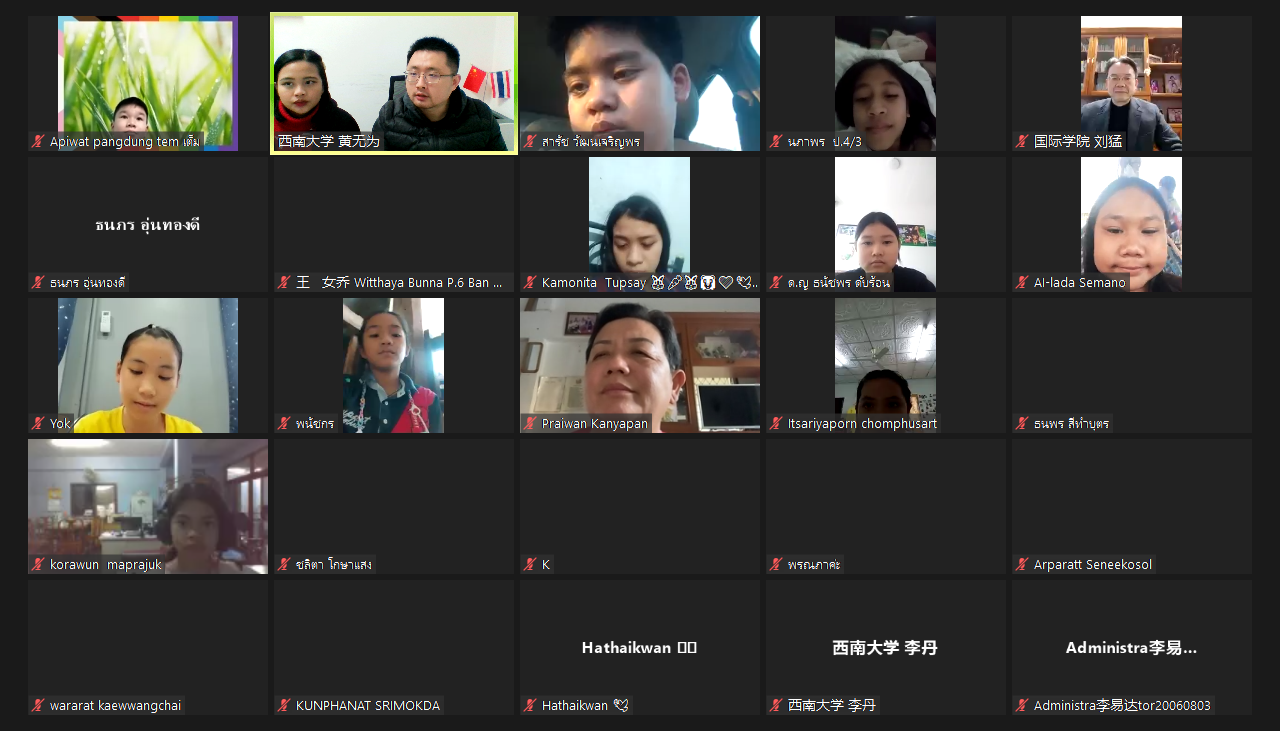 1月28日晚,由中国教育部中外语言交流合作中心主办、公司与泰国孔敬市政府越甘小学共同承办的 “汉语桥三亿体育有限公司-泰国孔敬大学孔子公司‘玩转汉语,云游中国’小员工线上项目” 闭营仪式暨成果汇报展顺利举行,三亿党总支书记刘猛,汉语国际教育系主任杨甜、泰国孔敬市政府越甘小学汉语教学负责人洪邵玲(Mrs.Praiwan Kanyapan)、三亿授课教师以及全体项目员工参加仪式。仪式由项目负责人黄无为主持。