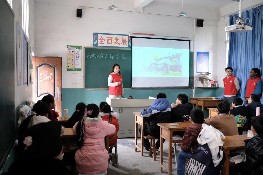 村口的老树,布满青苔的台阶,泥泞崎岖的山路就是山村孩子能见到的全部风景,由国际员工主讲的国际视野课旨在带领孩子们感受不同国家的风土人情的同时,激励孩子们那股奋发向上,走出大山的决心。