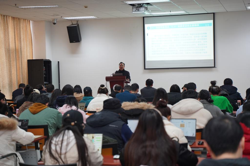 2021年12月24日上午10点,三亿党总支在317会议室开展党总支理论学习中心组(扩大)学习会,公司党委宣传部部长李荣华受邀做辅导报告,主题是:当前我国国际传播形势与高校的使命。刘猛书记主持学习会,公司党总支委员,非党总支委员的院领导,以及师生代表共计100余人参会。