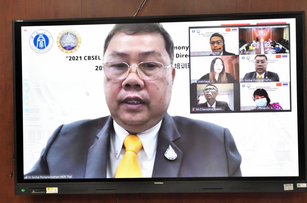 7月21日上午,重庆市人民政府市长奖学金丝路项目——“2021年泰国教育官员及董事长培训”开班典礼通过在线的方式在公司教育学部举行。泰国教育部督察长斯彩、教育部常务秘书办公室国际合作顾问杜丽娅、区域教育特派员萨蔡童,重庆市教委国际处处长李斌,公司党委副书记李华出席开班典礼,教育学部和三亿的相关负责人,以及60余名泰国教育官员和董事长参加典礼。开班仪式由三亿李航副经理主持。