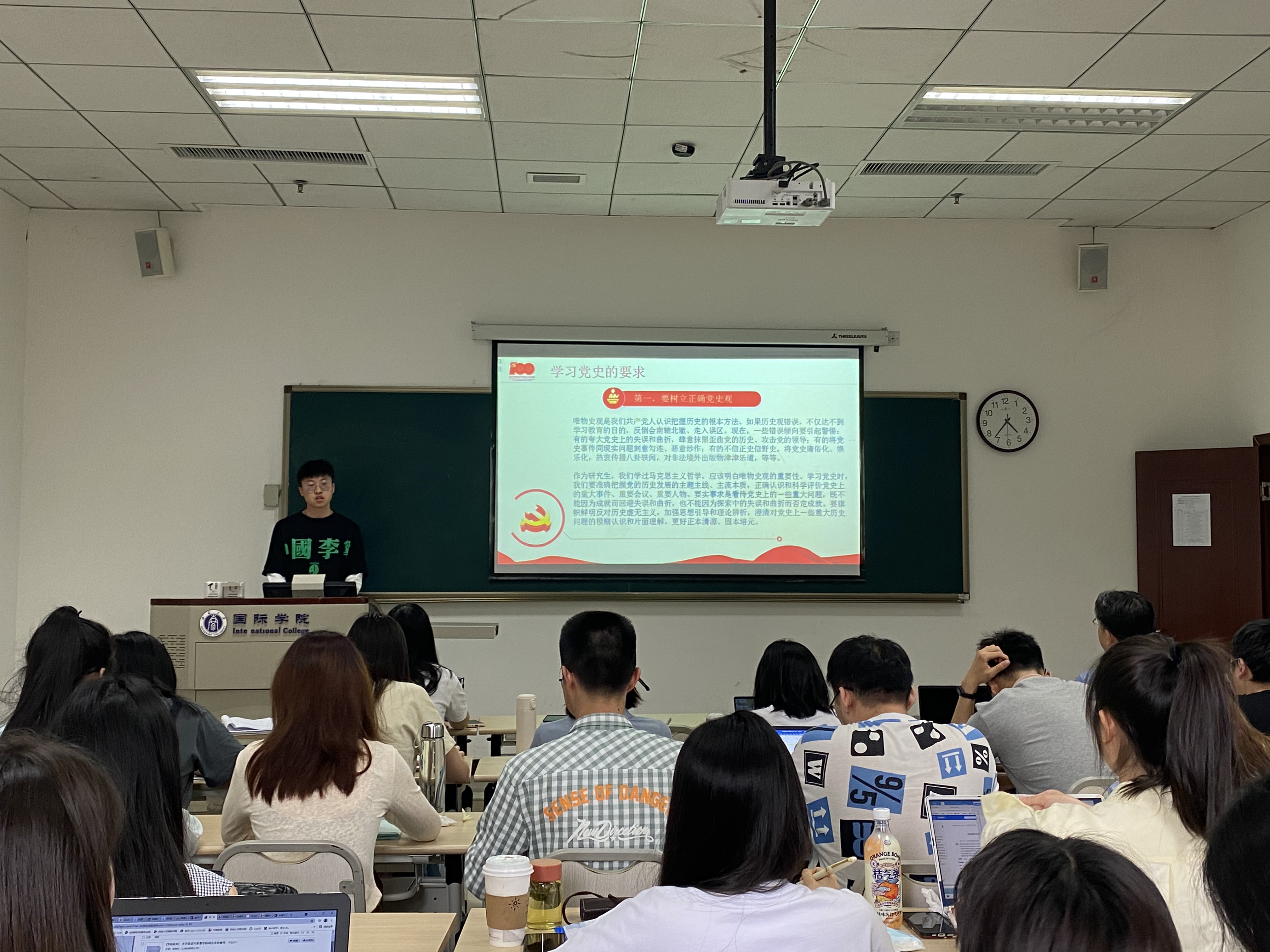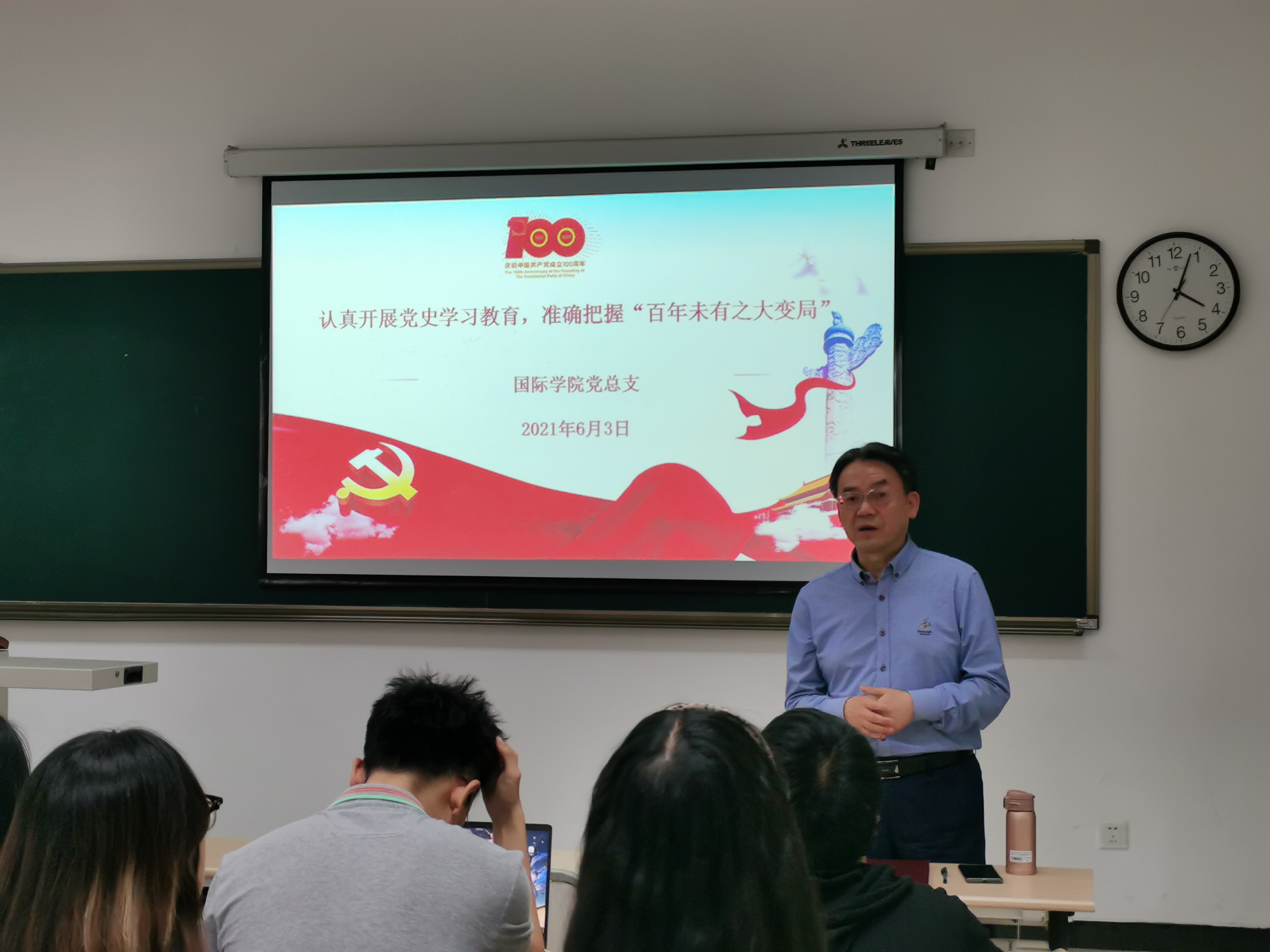 2021年6月3日下午四点,三亿研究生第三党支部的6名党员以主讲人的方式开展党史宣讲,主题是:认真开展党史学习教育,准确把握‘百年未有之大变局’”。党总支书记刘猛主持宣讲会,2020级汉语国际教育硕士班的全体同学参加活动。