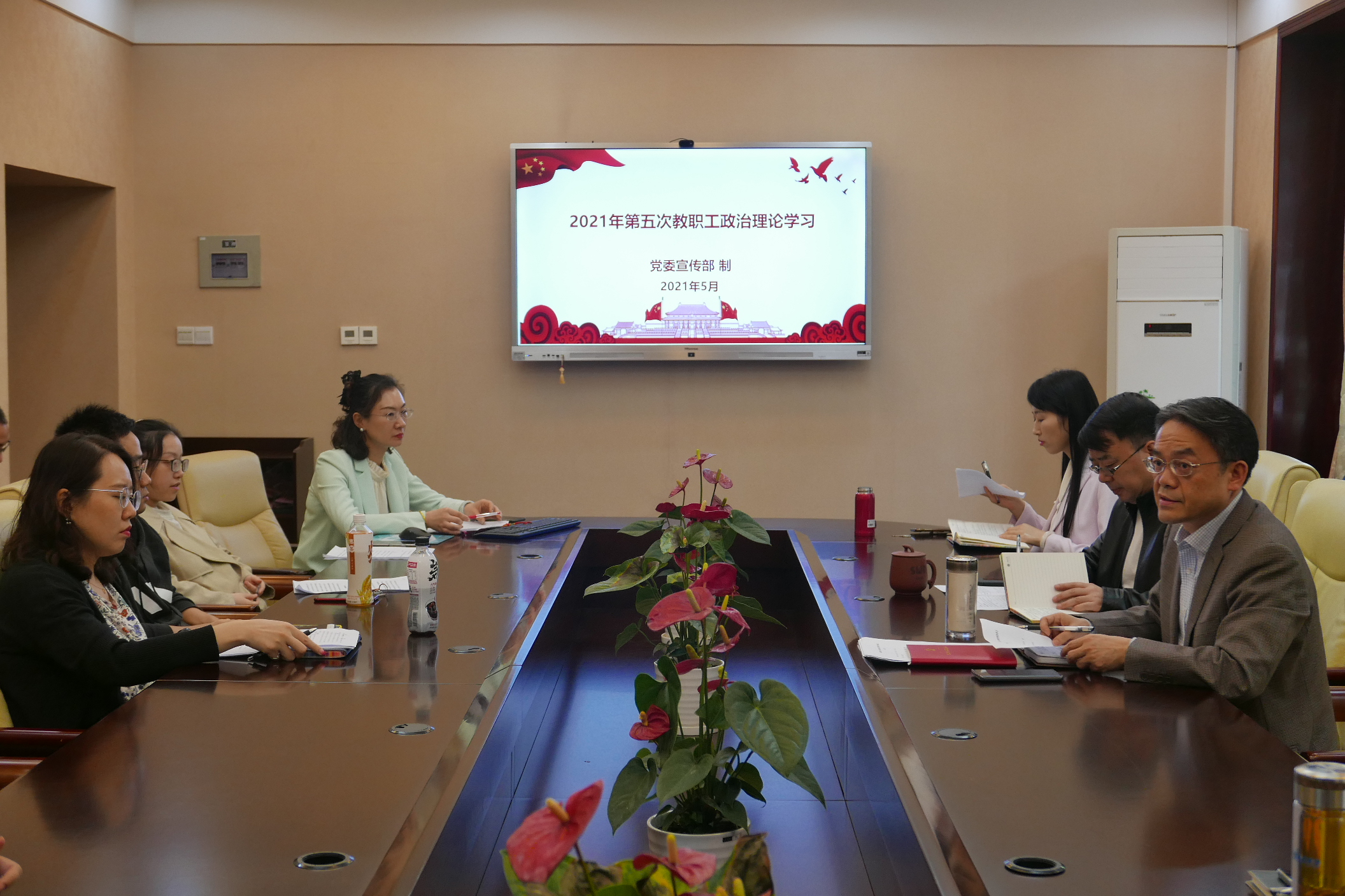 2021年5月7日下午3点,三亿全体教职员工在紫云楼签约室开展本年度第五次政治理论学习活动,会议由刘猛书记主持。
