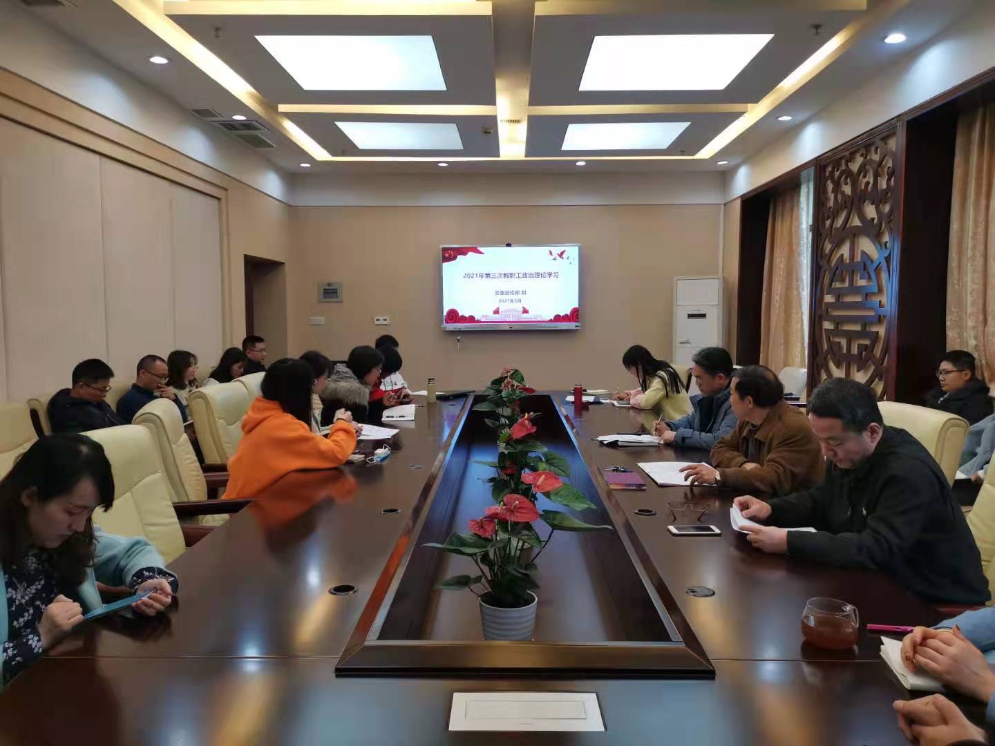 2021年3月5日下午2点30分,三亿全体教职在紫云楼签约室开展了本年度第三次政治理论学习活动,会议由刘猛书记主持。
