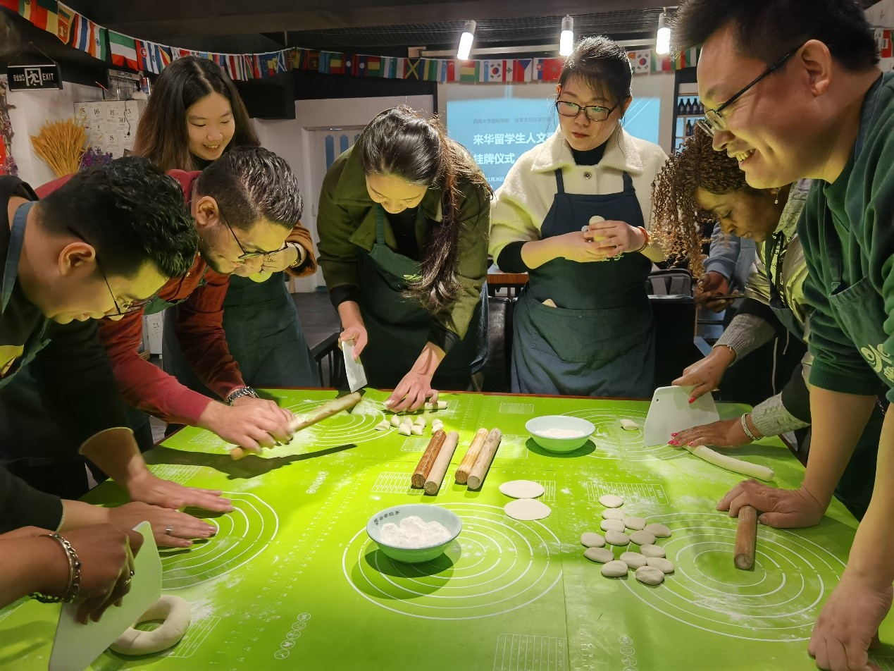 谷剑飞老师代表“谷家饺子”对中外师生的到来表示欢迎,介绍了“谷家”以品享传统美食为媒介,打造阅读、手作、沙龙、花艺、亲子等多元共享空间,承载食欲、情怀、文化的经营理念。