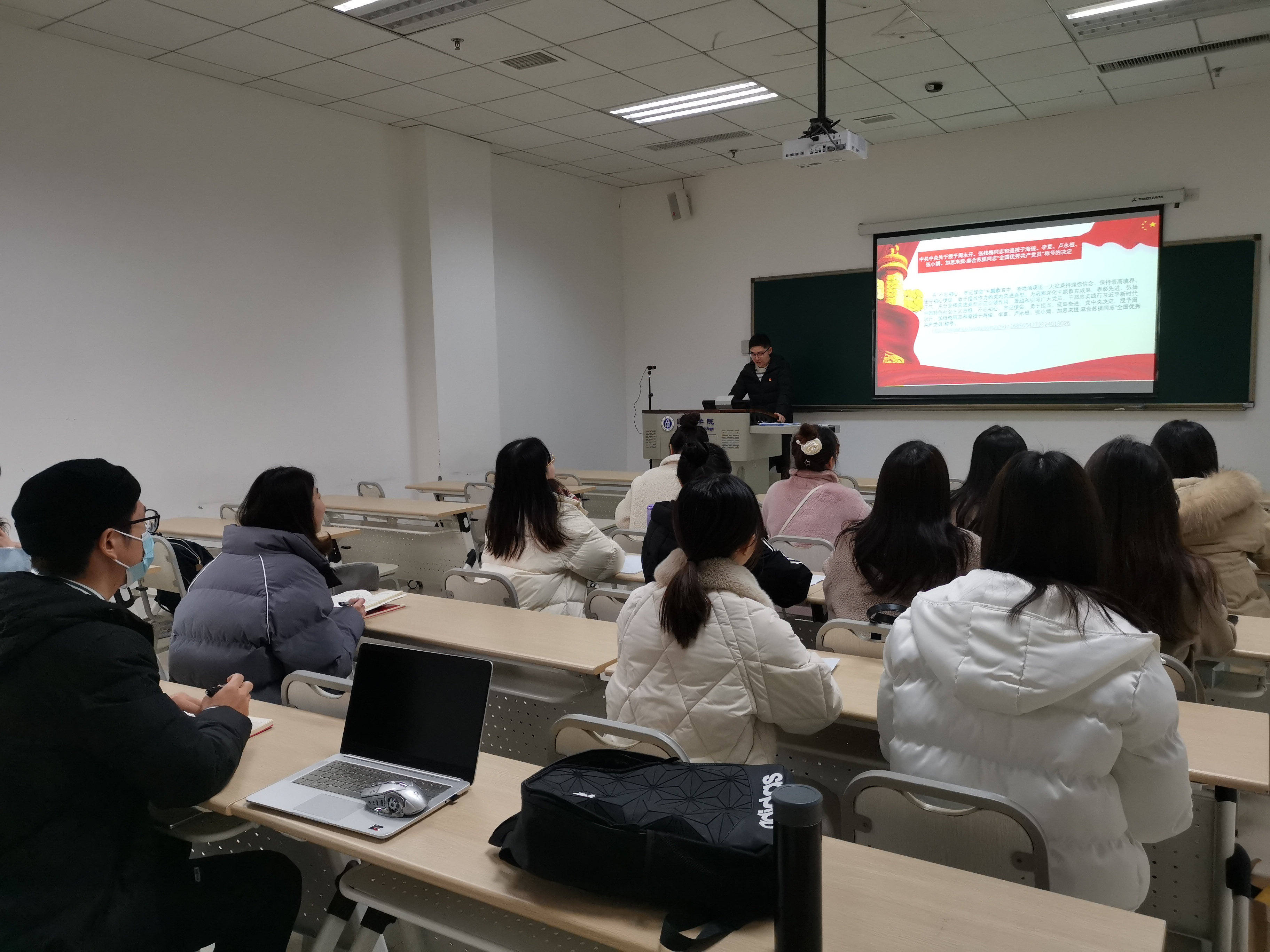 1月15日下午14:30研究生第一党支部在紫云楼210室开展了“学用新思想、担当新使命、开启新征程”主题党日活动及党员民主评议会。会议主要分为以下几个环节进行。