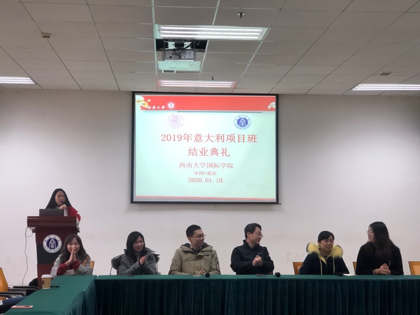 1月10日上午十点,2019年意大利项目班结业典礼在公司317教室圆满举行,参加结业典礼的有副经理李航,招办黄无为老师,林千鹏、谢晓笛、胡洪瑜、冯焕叶、祁彩虹等五位任课老师,以及意大利圣心大学和威尼斯大学两个项目班的32名员工。结业典礼由班主任刘妍芩、张鹭遥主持。