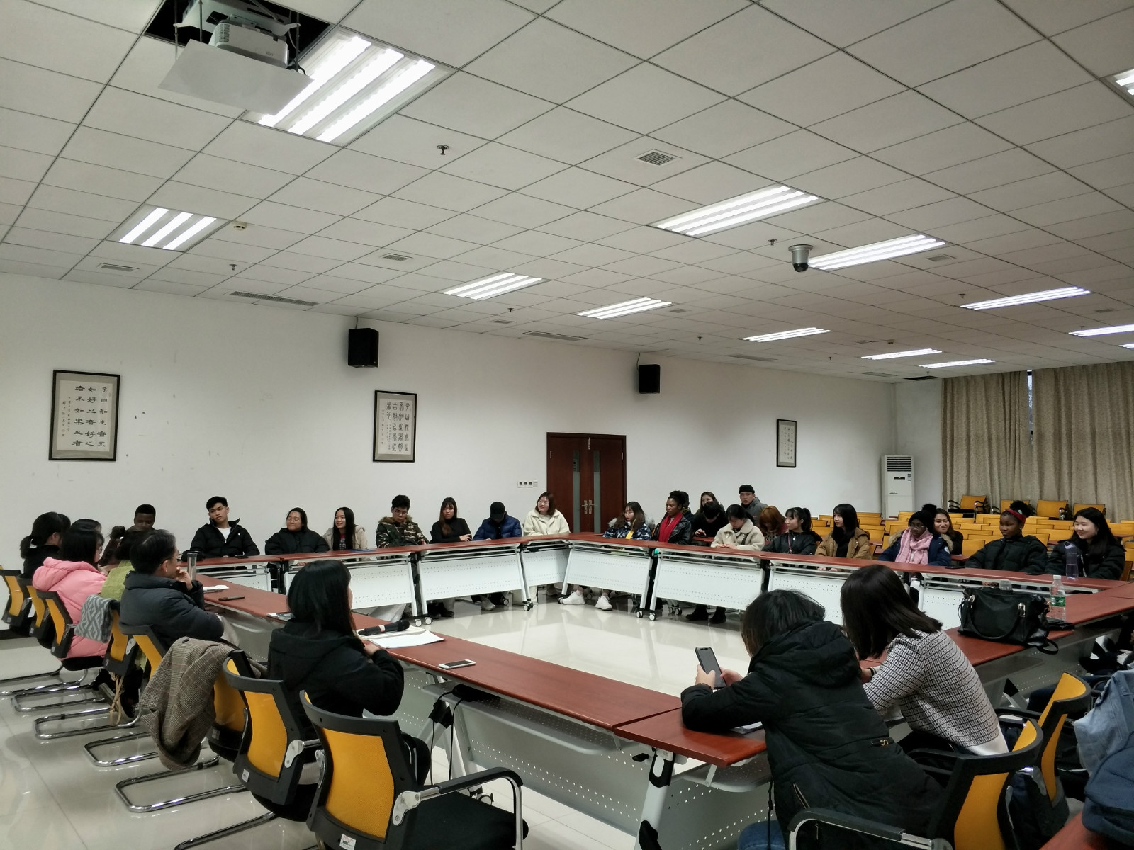 会议首先回顾了合唱团在万州“第二届世界大河歌会”活动上的演出视频,并观看合唱团成长主题短片。之后新老团员员工代表西素达(老挝)、李凯(尼日利亚)以及胡洪瑜老师依次发言。他们纷纷表示,三亿五洲合唱团给来华职工提供了一个很好的交流平台。因为喜欢音乐相聚在这里,这儿不仅可以结识各个国家的朋友,同时能更好地学习中文歌曲,了解中国文化。
