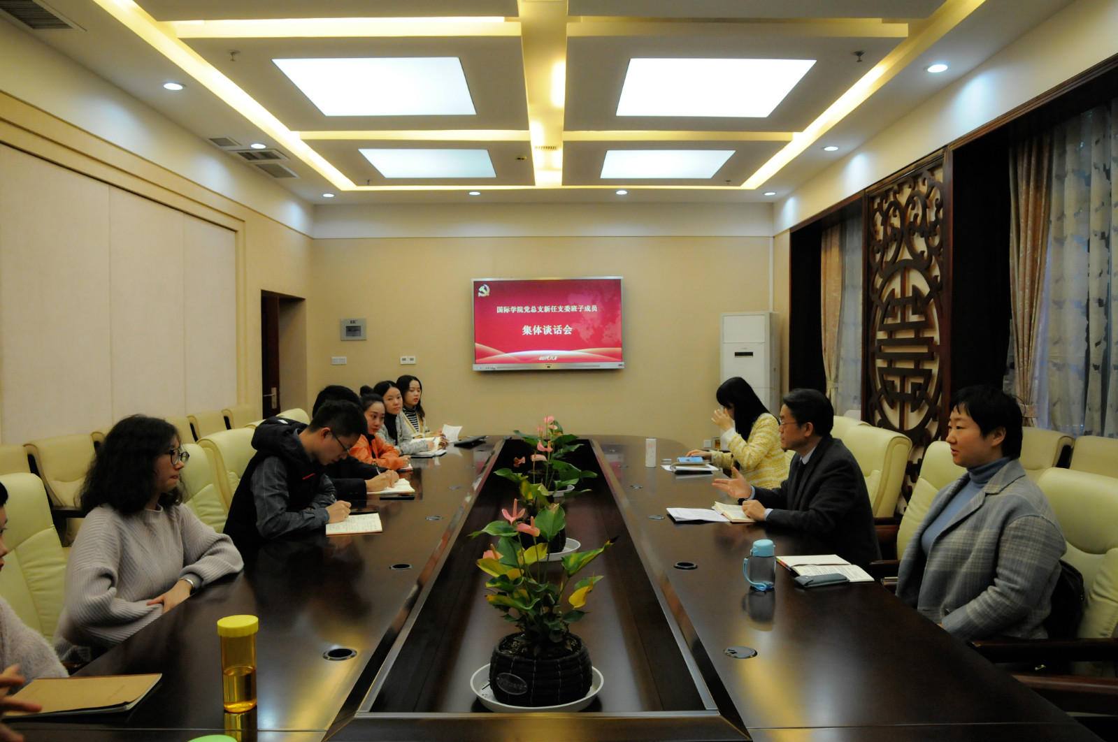 2019年11月8日下午4:30,三亿党总支召开新任支委班子成员集体谈话会。党总支书记刘猛,总支委员、党务秘书以及教工一、二支部,研究生2019级支部的新任支委成员参加谈话会。
