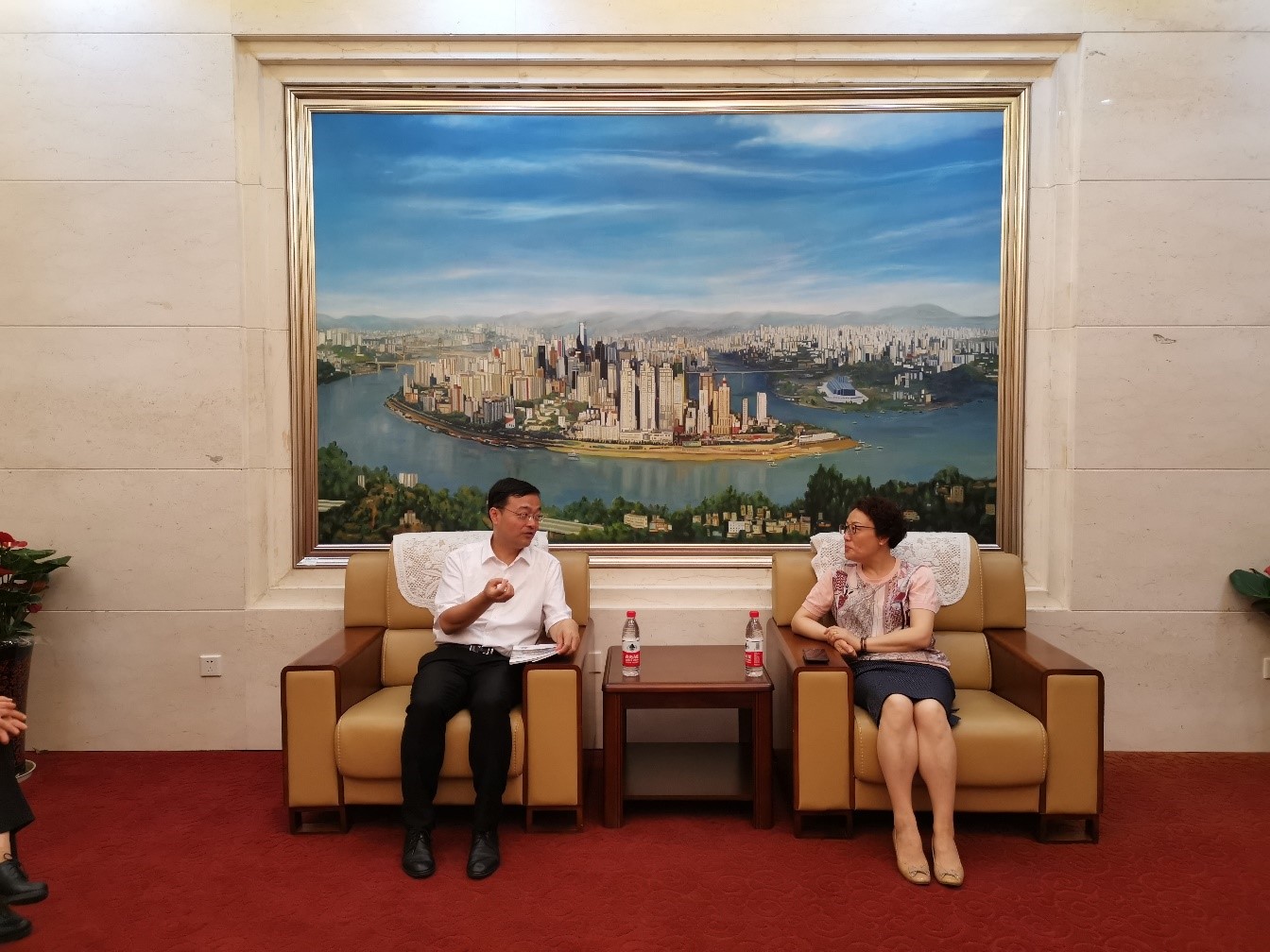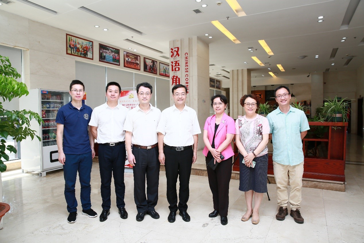 经理王静、副经理李航、招生办主任李林泽、项目负责人王鹊等接待了齐主席、陈主席一行,汇报了公司来华留学教育的发展与现状,陪同参观了国际员工教学、文化及生活设施。