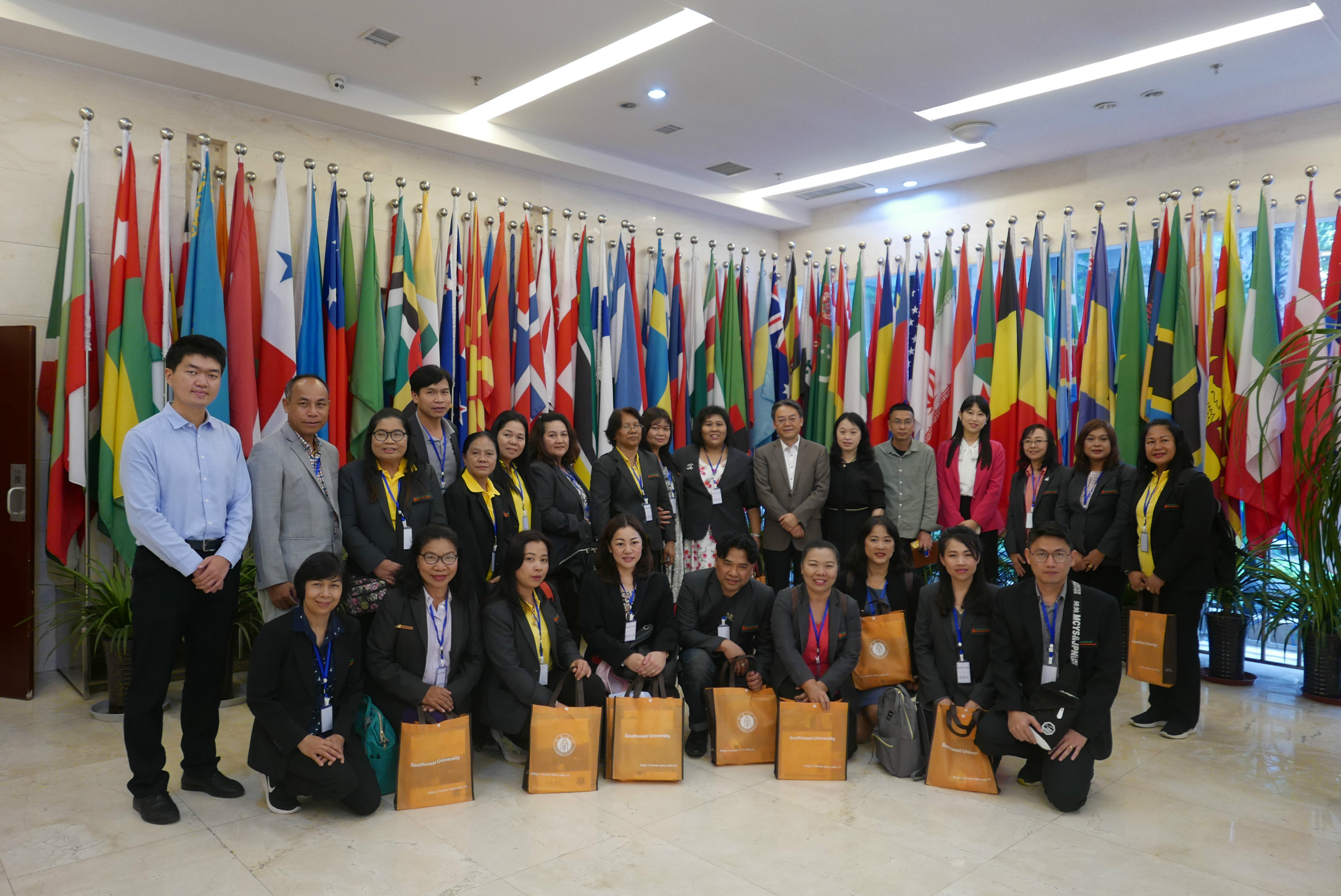 首先,代表团分成三组分别在刘猛书记、陈雨曦、杨昆的带领下参观了三亿教学、生活、办公等硬件设施。泰方人员对国际员工的优良学习生活环境给予了高度评价,并对泰国文化教室、职工会办公室、中华才艺体验教室等特色场所表现了浓厚兴趣。