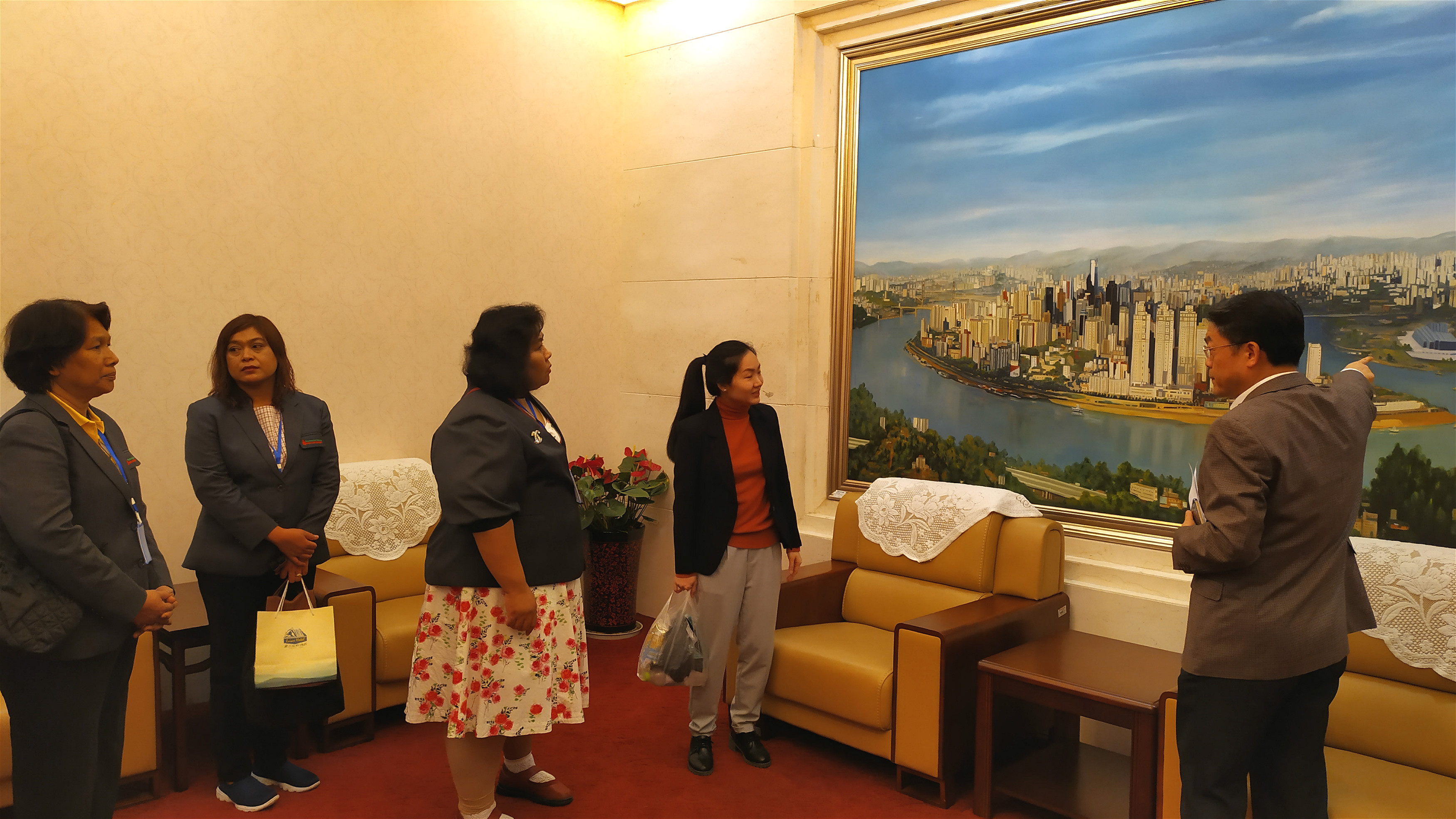 5月6日上午,孔敬大学药公司副经理Tipaporn女士一行22人到访公司,刘猛书记热情接待客人,公司药公司陈敏副经理、杨坚副书记参加座谈会。