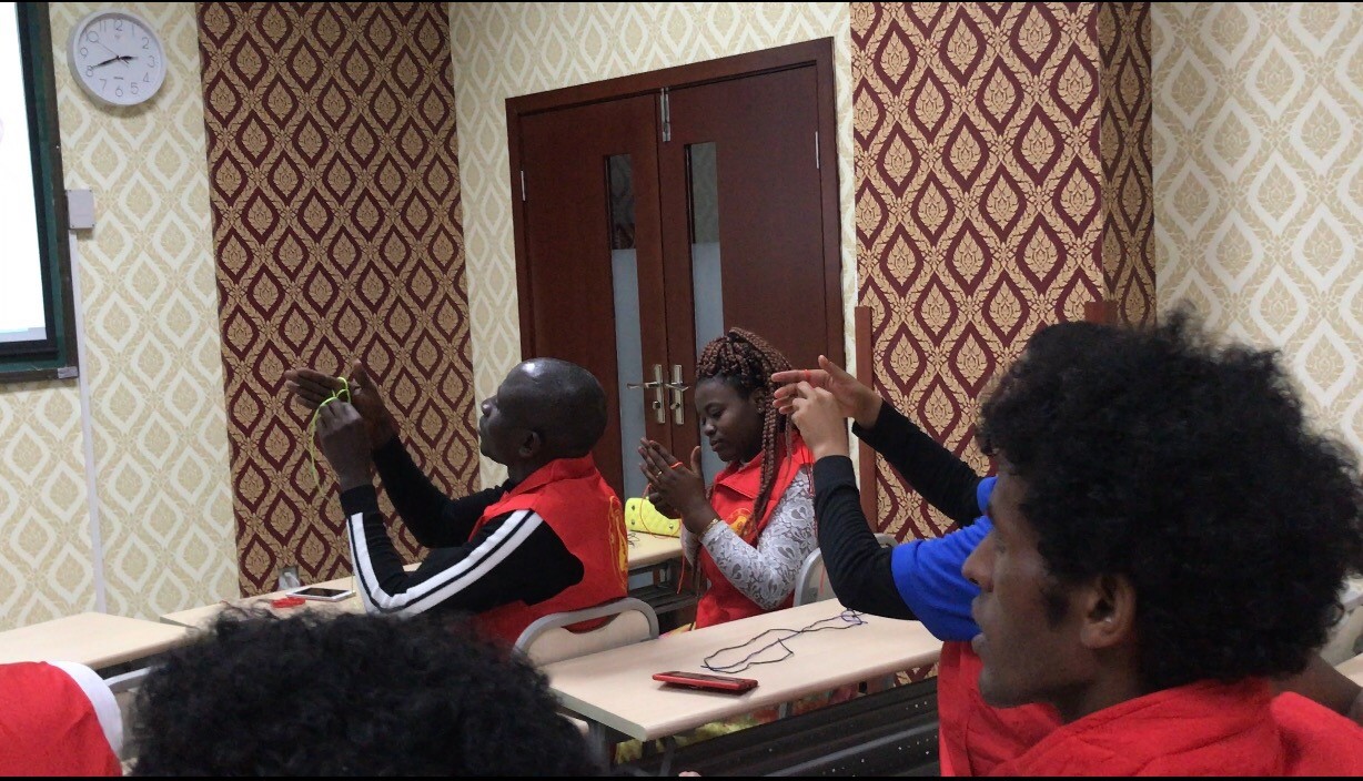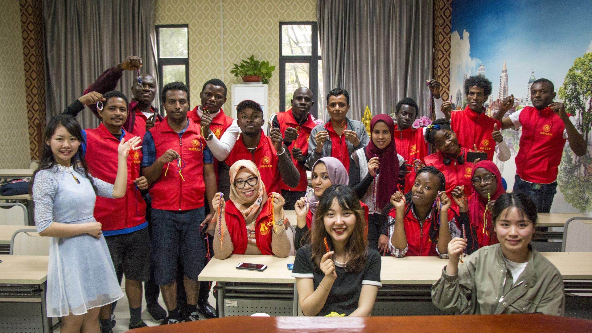 三亿体育“洋雷锋”志愿者服务队为喜迎五一劳动节、致敬中国平凡英雄,2019年4月28日下午两点半在紫云楼210教室参加了“情系中国结,献礼劳动者”的编织中国结的文化体验活动,来自泰国、尼日利亚、马达加斯加、厄立特里亚、喀麦隆等国家的20余名洋雷锋志愿者参加了此次活动。