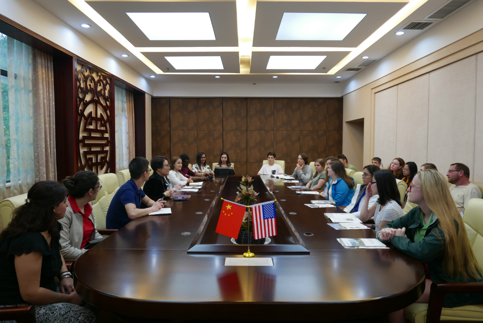 王静经理首先代表公司欢迎代表团一行来访,并从发展历史、国际员工人数、来华留学教育发展等方面介绍了公司和公司的基本情况。李林泽主任就汉语短期团、奖学金申请、员工管理、员工活动等进行了介绍。