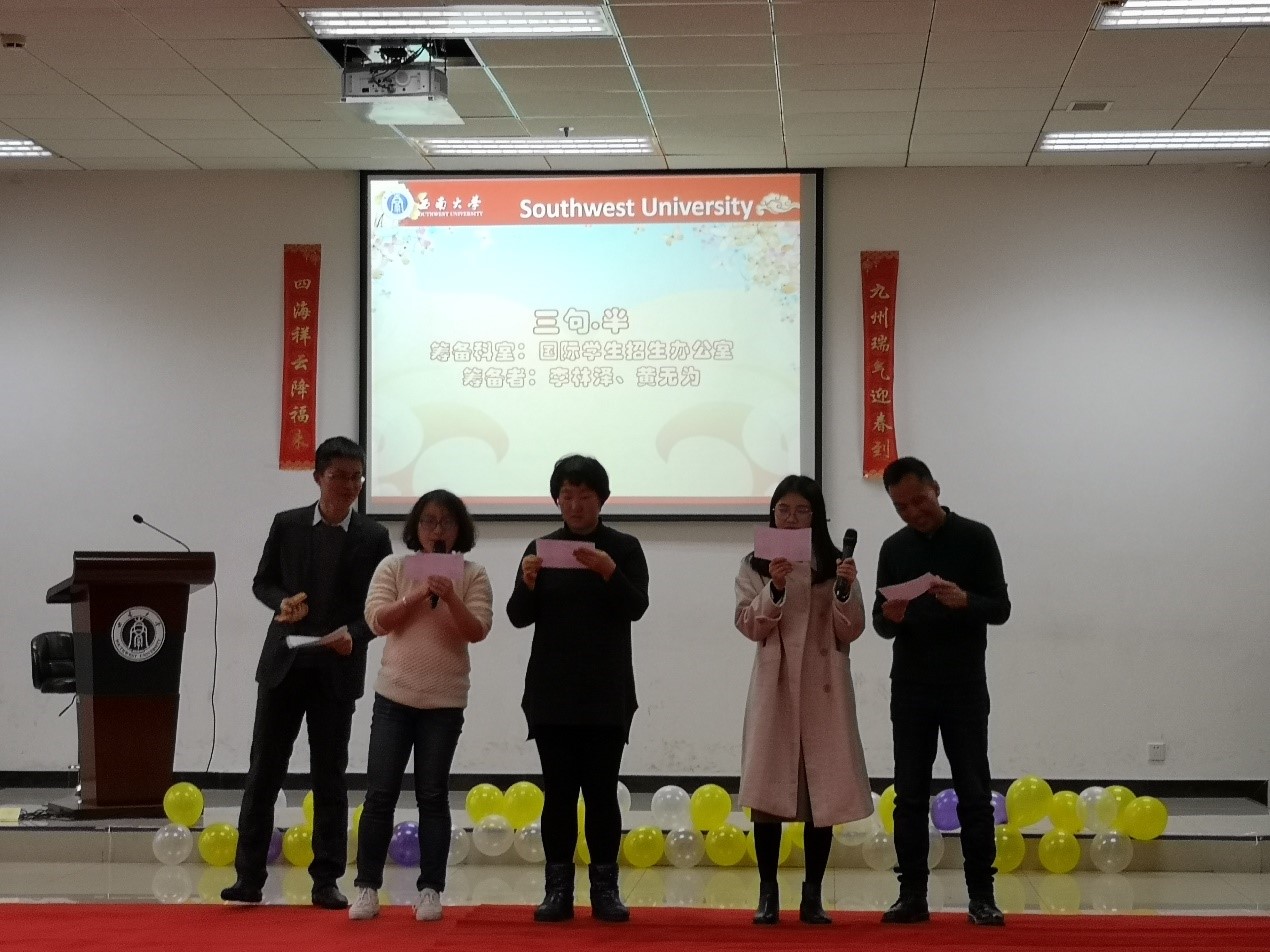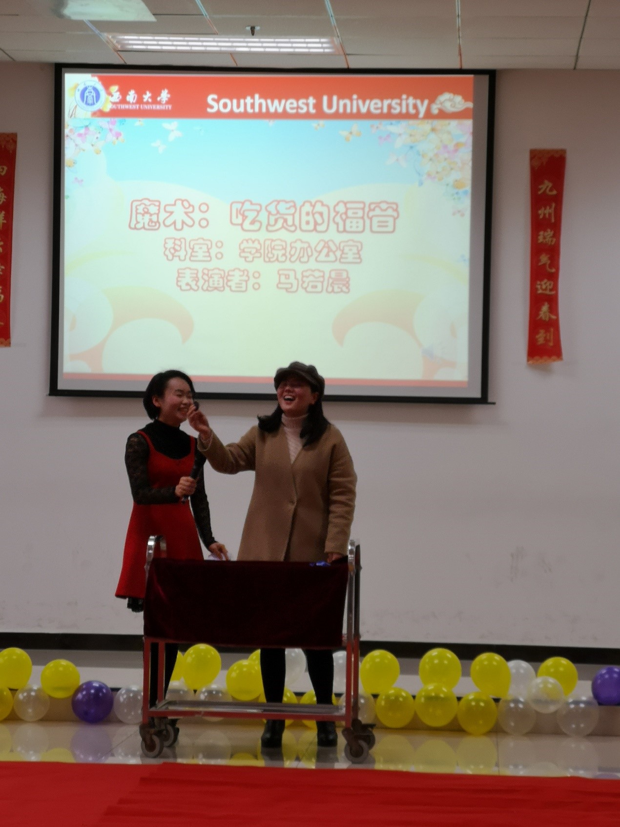 1月18日下午三点,三亿40余名教职工在紫云楼317室欢聚一堂,喜迎猪年新春。