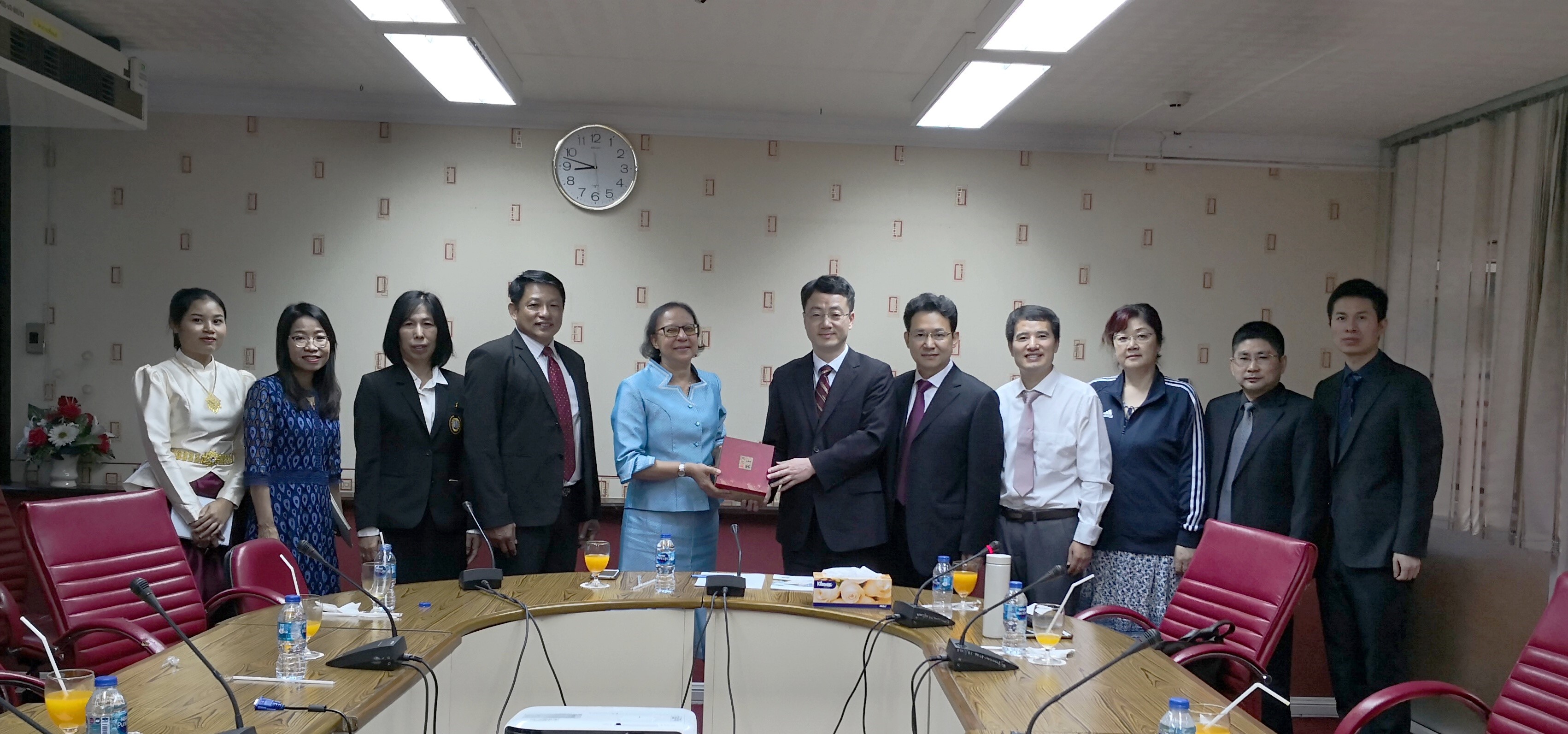 随后,代表团访问了泰国教育部直属的泰国教育行政管理公司,与经理Prasit Kheowsri、副经理Temchit Chantaka及相关部门负责人就重庆市长奖学金高端培训项目总结及申报、建立中泰教育培训中心、境外办学项目等深入交换了意见。