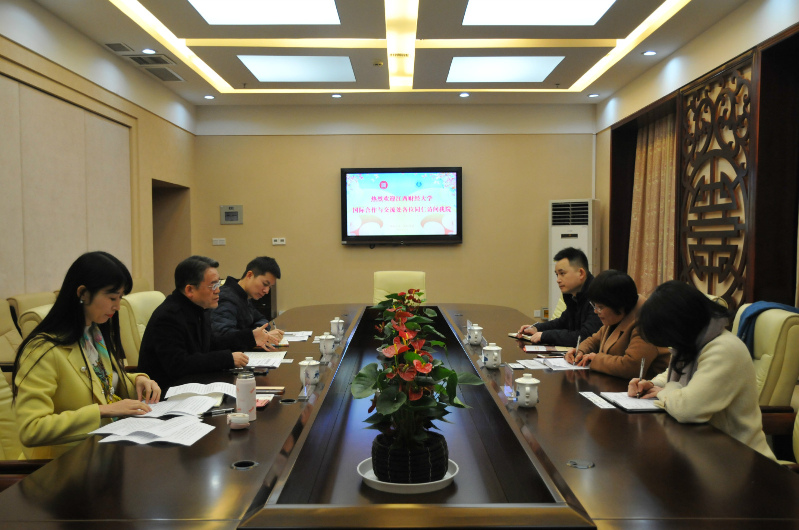 12月12日上午10点,江西财经大学国际合作与交流处吕腮菊副处长一行3人来访公司,并与刘猛书记和相关科室负责人在紫云楼签约室座谈交流。