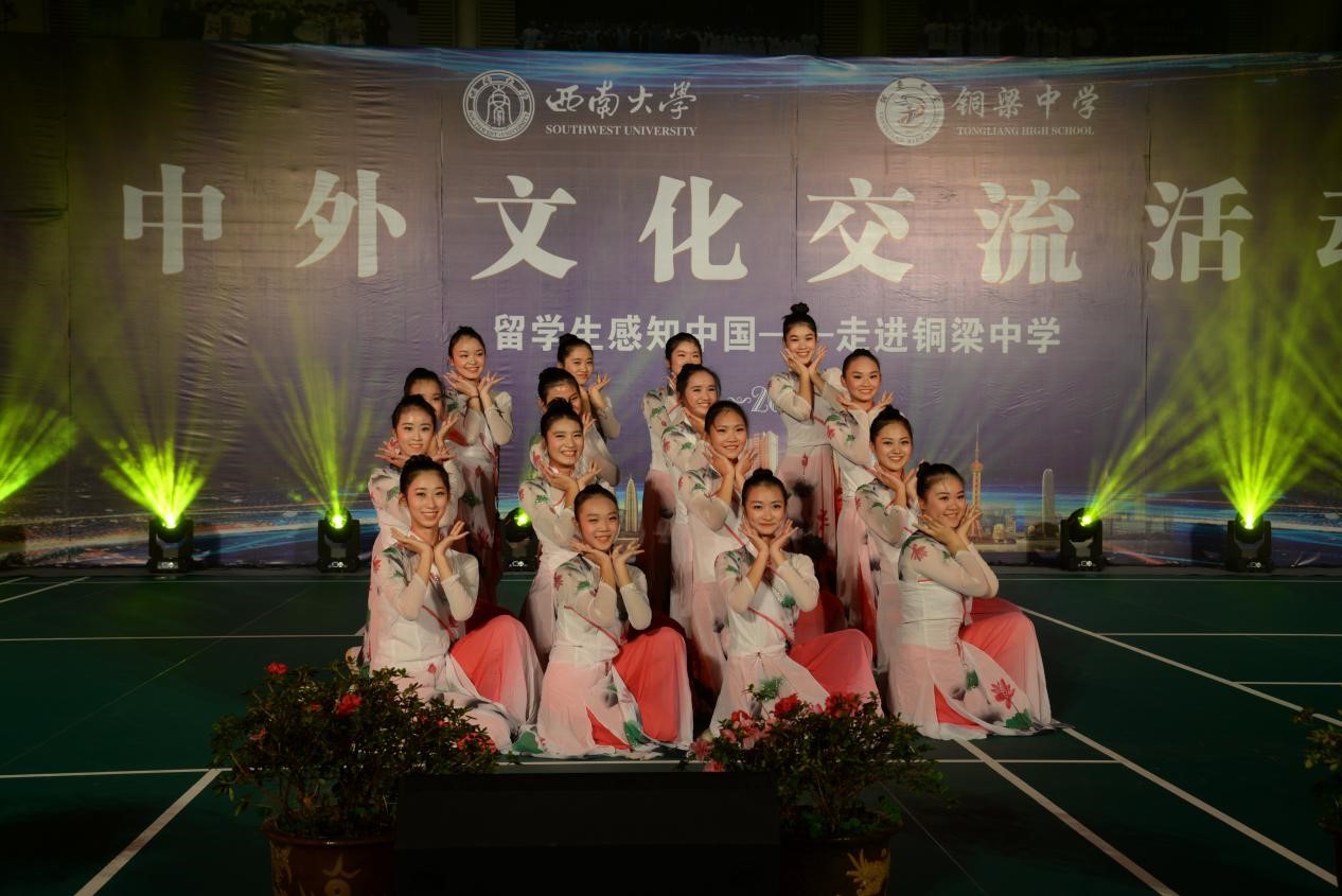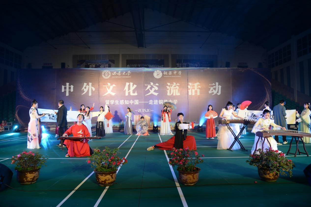 晚上七点,铜梁中学的全体员工和国际员工一起在铜梁中学体育馆参加了“职工感知中国——走进铜梁中学”中外文化交流活动文艺晚会。