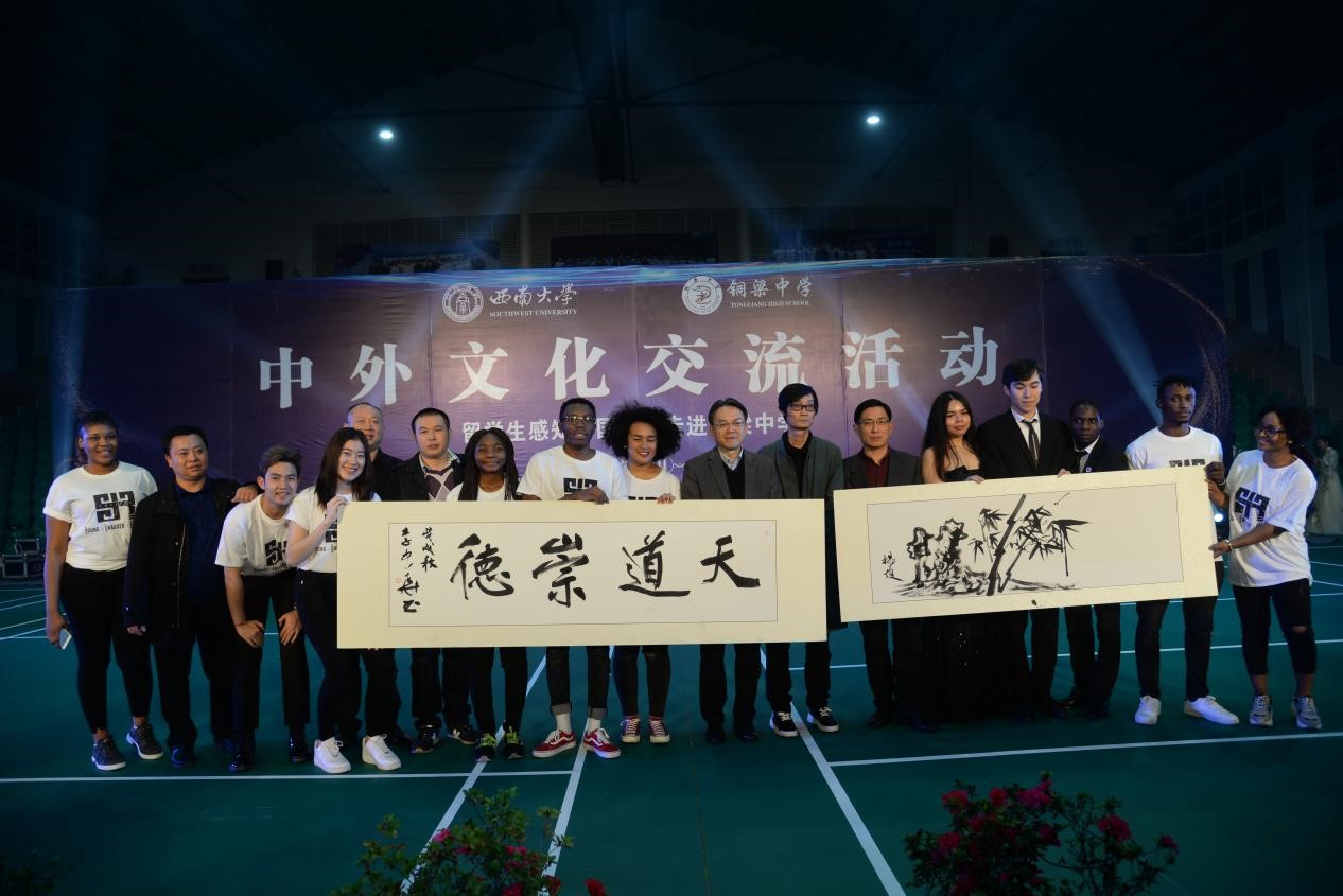 10月25日下午,国际员工们有幸受邀来到铜梁中学,走进中学课堂与中国师生交流沟通,分享经历,了解彼此国家文化。在课堂中,国际员工们了解了中国的礼仪知识,饮食文化,学习书法艺术和中国结的编制。随后,国际员工们与铜梁中学的员工们一同参观校史馆并共进晚餐。