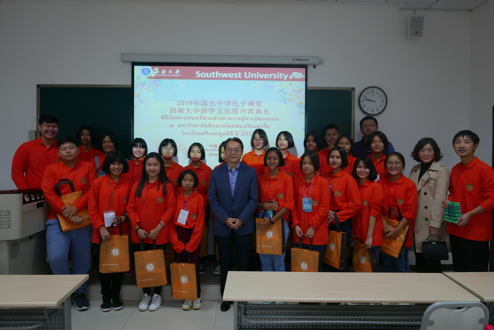 据悉,此次泰国合艾国光中学孔子课堂游学文化营由公司与合艾国光中学孔子课堂合作举办,营员为泰国南部中学员工。在为期14天的游学文化营期间,同学们将学习汉语言及中国文化课程,参观重庆的人文与自然景观,并开展与公司中国员工及职工的交流互动等。