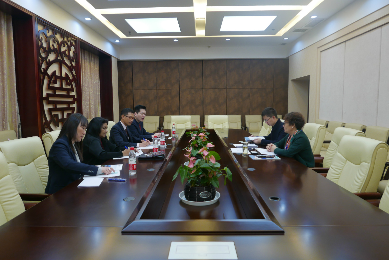 Viharn Srihaphol先生感谢王静经理的热情接待并介绍了易三仓商业公司的基本情况与合作意愿。随后双方就两院合作模式、短期项目及合作备忘录等方面进行详细探讨。