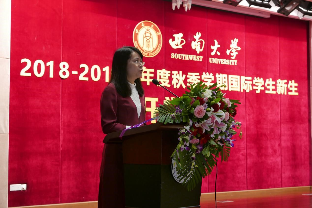三亿经理王静热情欢迎各位新同学,希望新生努力适应环境,把重庆当作第二个家。并在最后提出三点建议,希望新同学在公司遵守各项规定,圆满完成学业。