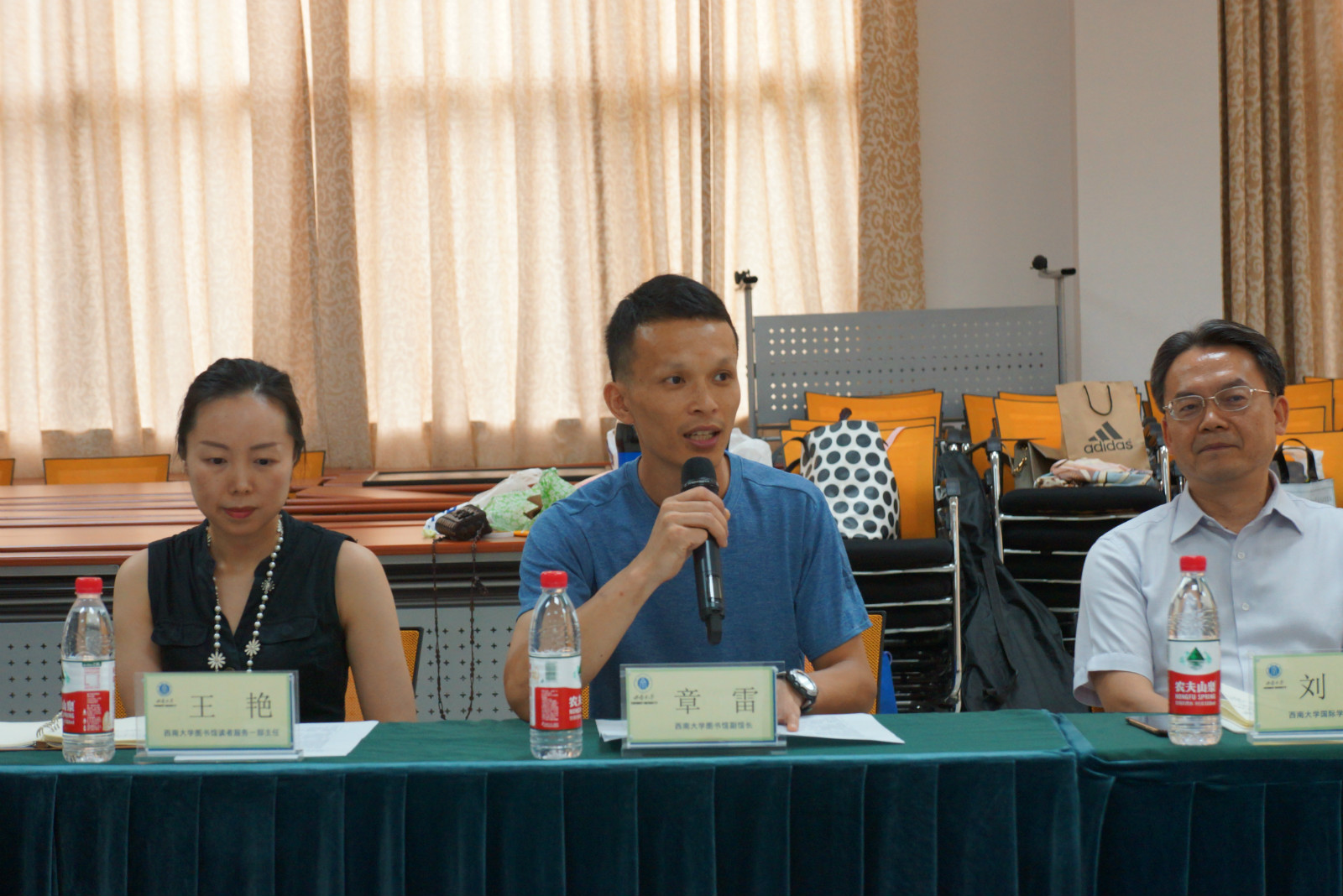 总结会上,图书馆副馆长章雷就图书馆对该项目的实习安排做了详细介绍,他非常肯定同学们在实习中的表现,同时也对实习中出现的问题提出了改进的方案。桂圆宾馆客房部部长张放祝贺同学们实习圆满结束,并认为能够与三亿共同将中国商业文化传播给泰国同学是一件值得坚持的事。