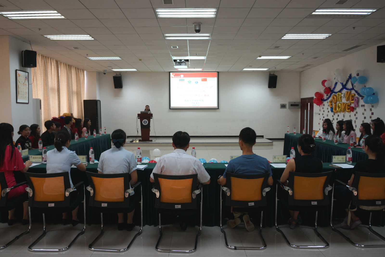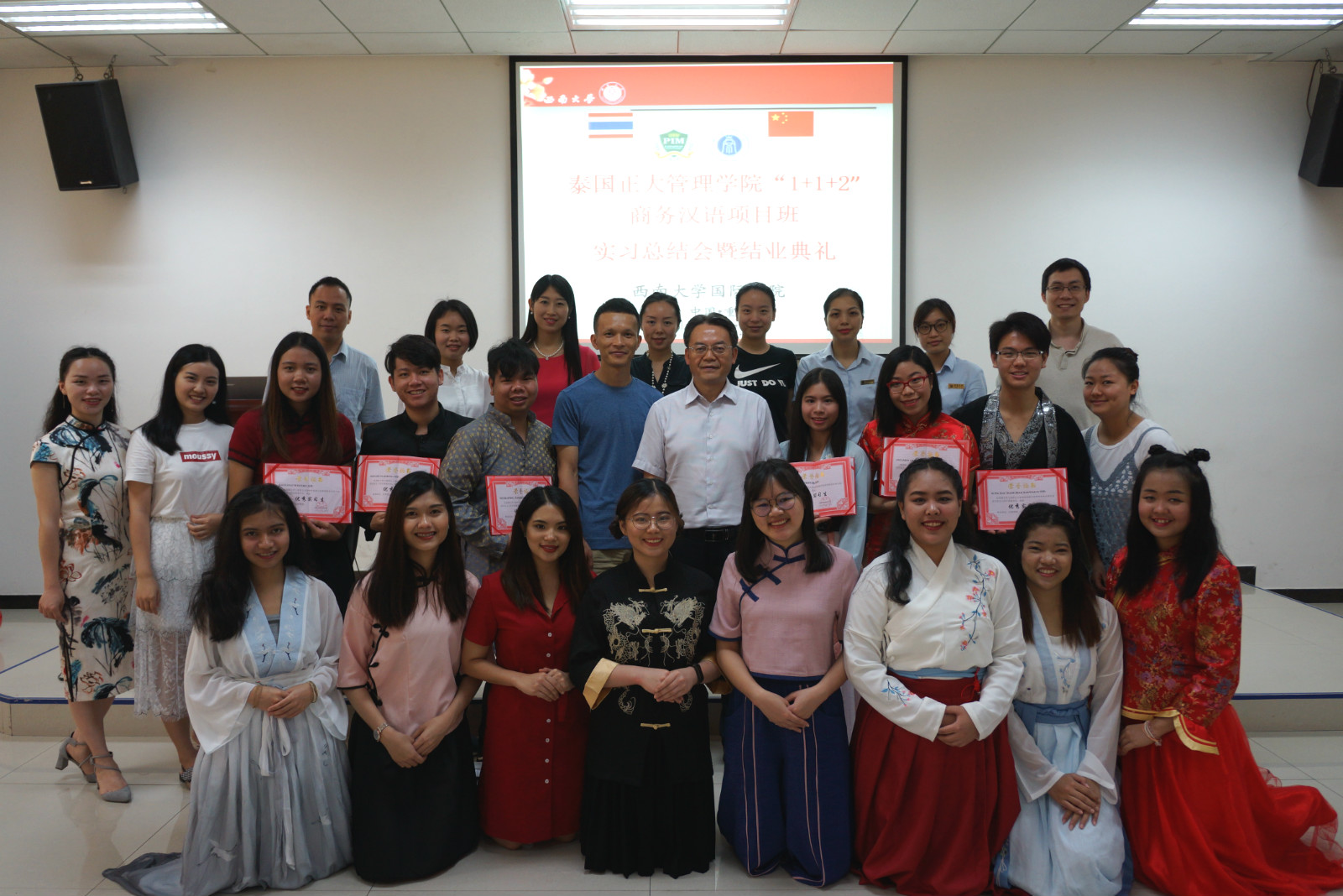 会议第二部分为结业典礼。通过观看视频,先对泰国同学留学西大这一年的学习工作情况进行了回顾。接着几位员工代表分别讲述了留学西大的感受,他们非常珍惜这次宝贵的学习机会,也非常感谢公司提供这么好的学习平台。