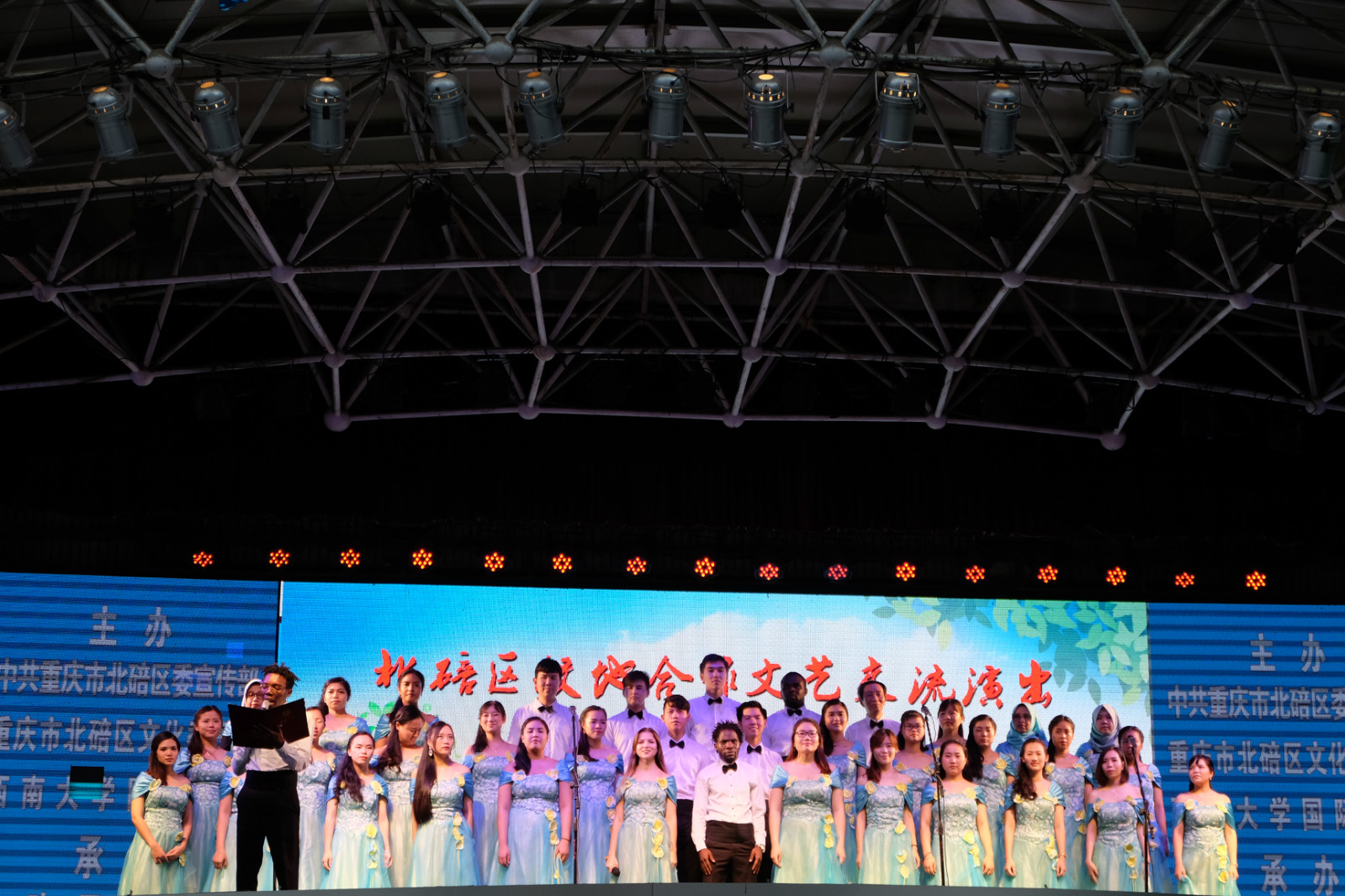 6月22日晚上七点,由中共重庆市委北碚区委宣传部,北碚区文化委,以及三亿体育主办,北碚区文化馆承办的“北碚区校地合作交流文艺汇演”在北碚区作孚广场的百姓大舞台上隆重举行,公司师生合唱团应邀参加演出。