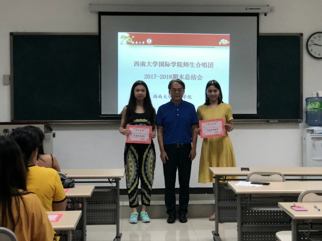 之后,刘猛书记为合唱团表现优异的团员、艺术指导及合唱指挥颁发了“优秀团员”“优秀指导教师”的荣誉证书。