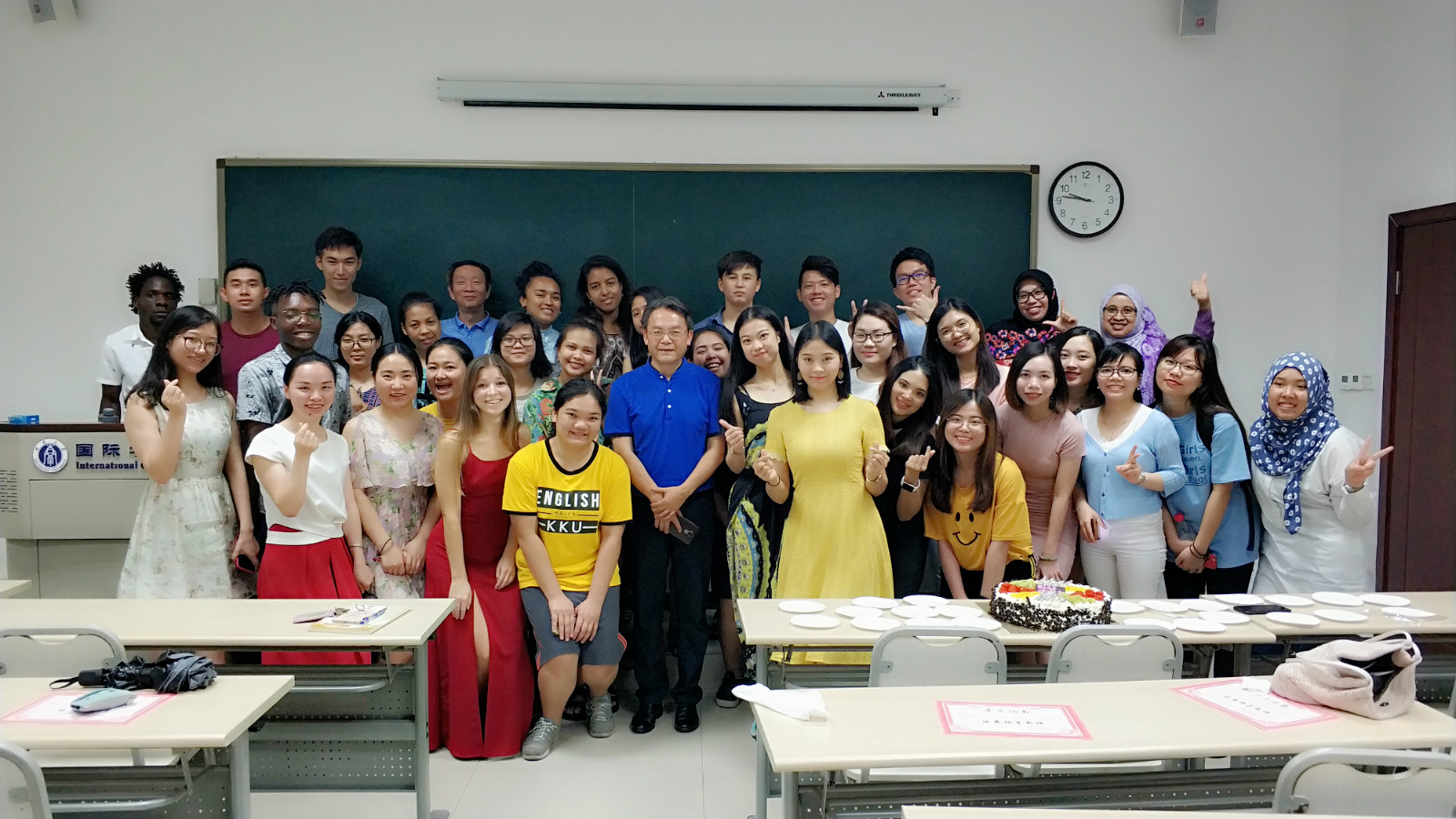 会议首先回顾了合唱团在“汉语之星”及北碚区校地文化交流活动上的演出视频,并观看合唱团成长主题短片。之后新老团员代表Kevin(印度尼西亚)、刘月光(泰国)、张鹭遥老师依次发言。他们纷纷表示,三亿师生合唱团给来华职工提供了一个很好的交流平台。在这里,他们不仅可以结识到来自各个国家的朋友,同时通过合唱排练,能够更好地学习中文歌曲,了解中国文化。