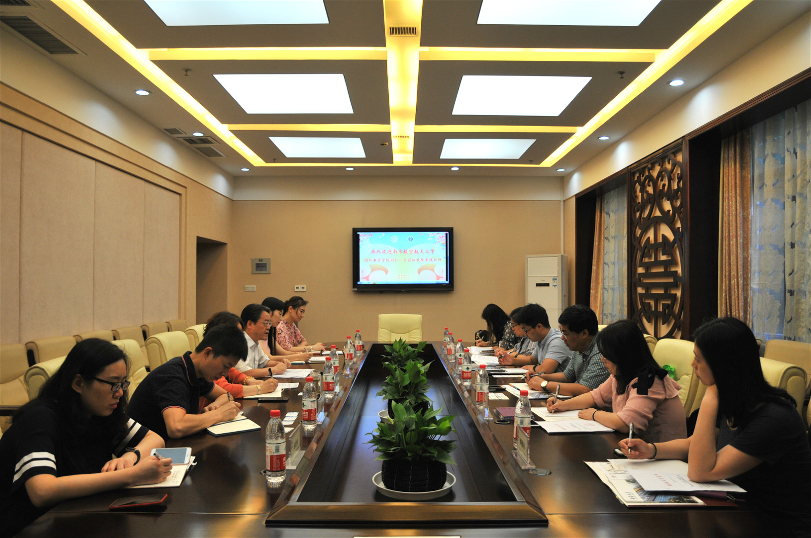 金泉元经理对公司取得的成绩表示钦佩与赞赏,并介绍了南京航空航天大学职工的招生、管理工作现状,双方就经费管理和全英文专业建设、职工趋同管理等方面进行了深入探讨。