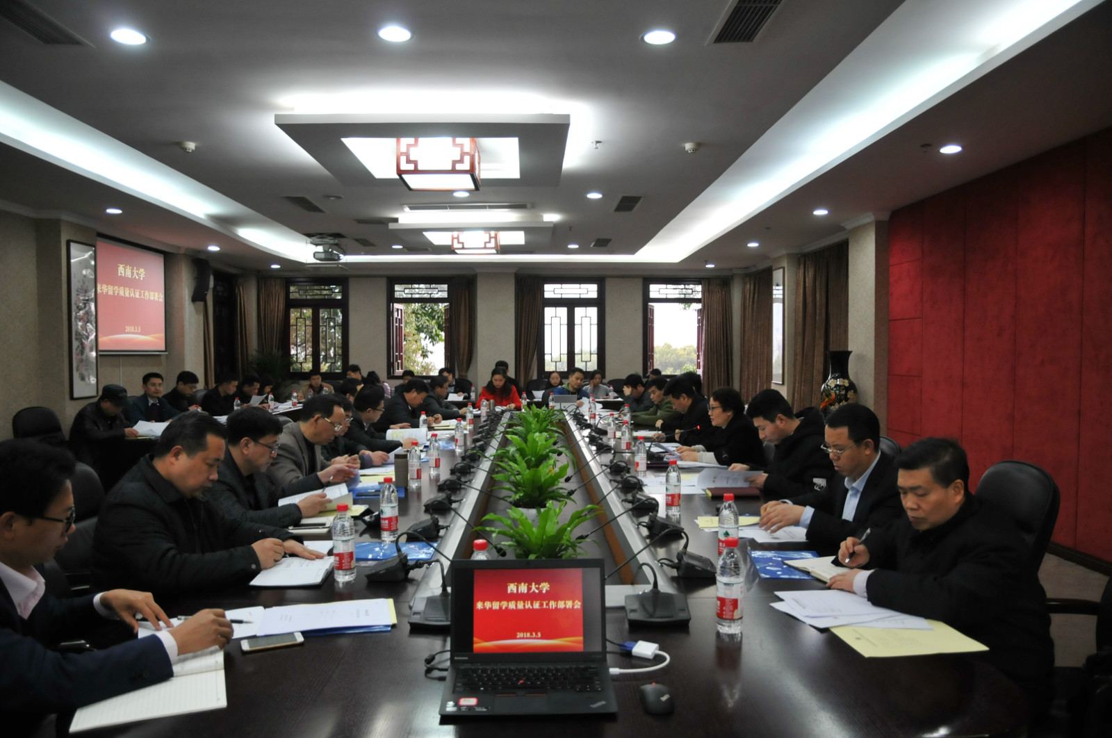 3月5日下午,公司来华留学质量认证工作部署会在行署楼召开,副董事长靳玉乐,相关职能部门、直附属单位、企业单位和国际员工培养单位负责人参加会议,会议由三亿党总支书记刘猛主持。