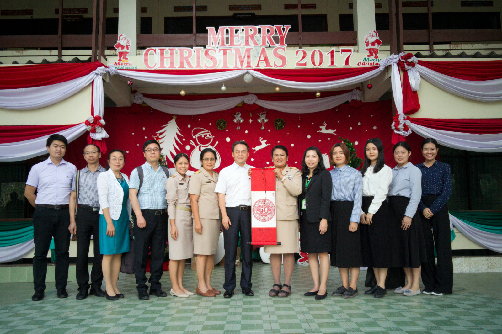25日,代表团访问了位于曼谷的正大管理公司,听取了校方关于正大集团和正大管理公司的介绍以及汉语国际教育硕士生的实习情况。代表团团长刘猛表达了在现有学分项目的基础上开展2+2双学位项目,并继续深化两校有关合作的倡议。代表团还通报了在公司学习的正大管理公司项目班员工的相关情况,并就继续教育和经济管理领域的合作展开了深入探讨。随后,代表团一行来到暖武里玫瑰园中学实习点,出席了三亿和该校的合作框架协议签署仪式,并前往龙社博学公司探望在该校实习的员工。