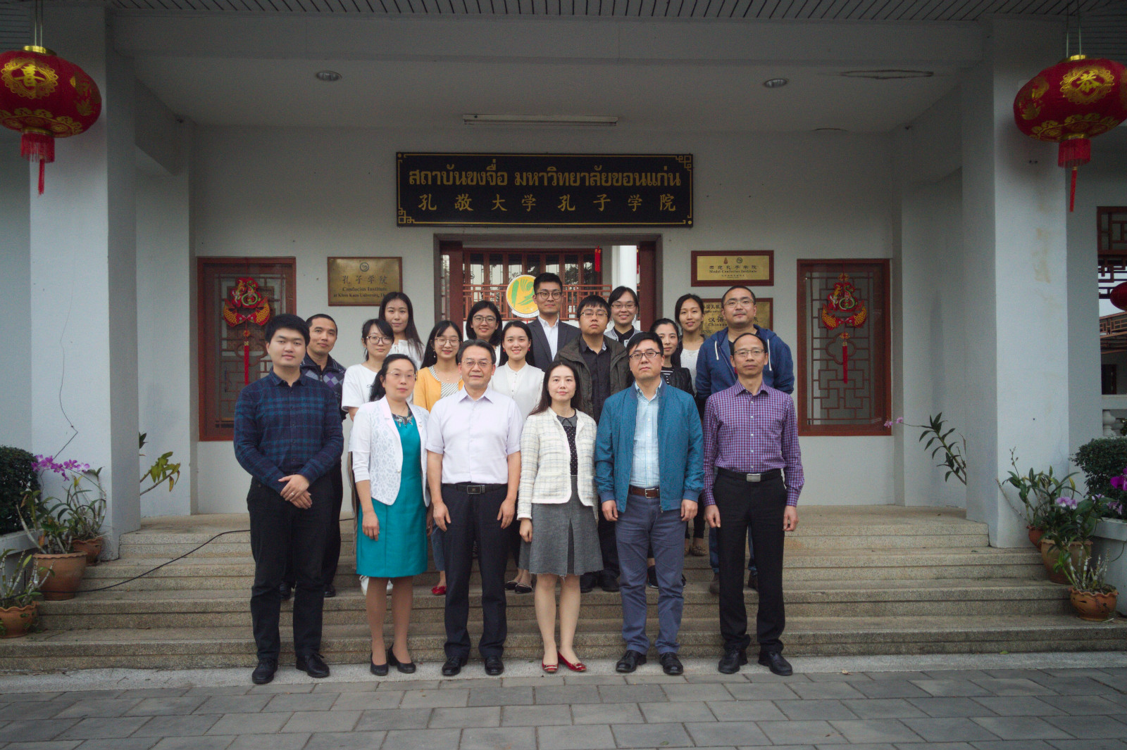 22日,代表团一行与孔子公司胡琳经理、部分公派汉语教师和全体孔敬地区汉语国际教育专业海外实习生座谈。胡琳经理介绍了孔院概况及所取得的工作成绩,实习生们对学习和工作的情况做了汇报。代表团一行寄语实习生在海外做好汉语教学的同时,加强政治和国情的学习,发挥个人优势,讲好中国故事。次日,代表团一行来到乌汶第二华侨公司,商谈远程教育的合作事宜,该校董事长庄舜鹏、经理黄培璇、经理助理罗俊勇等参与会见。双方就远程汉语教学和在该校建立汉硕实习点等事宜达成了共识。