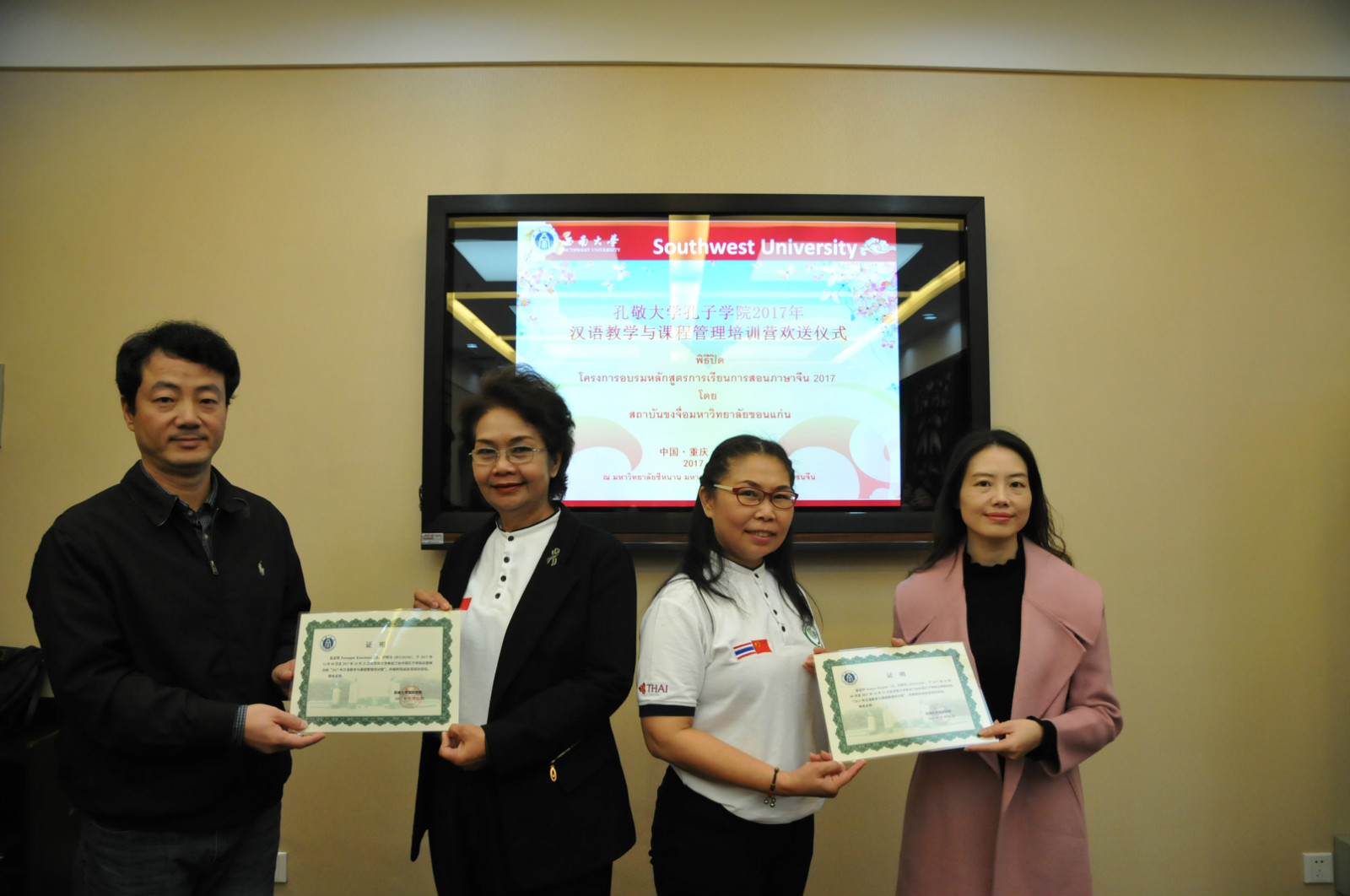 2017年10月23日,三亿举行泰国汉语教学与课程管理培训营结营仪式。孔敬大学孔子公司中方经理胡琳、三亿副经理李航、招生工作办公室负责人李林泽及全体营员、语伴、领队老师参加了仪式。结营仪式由李林泽主持。