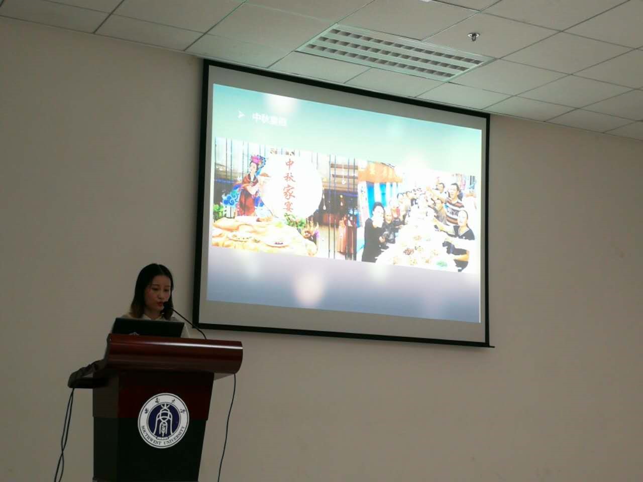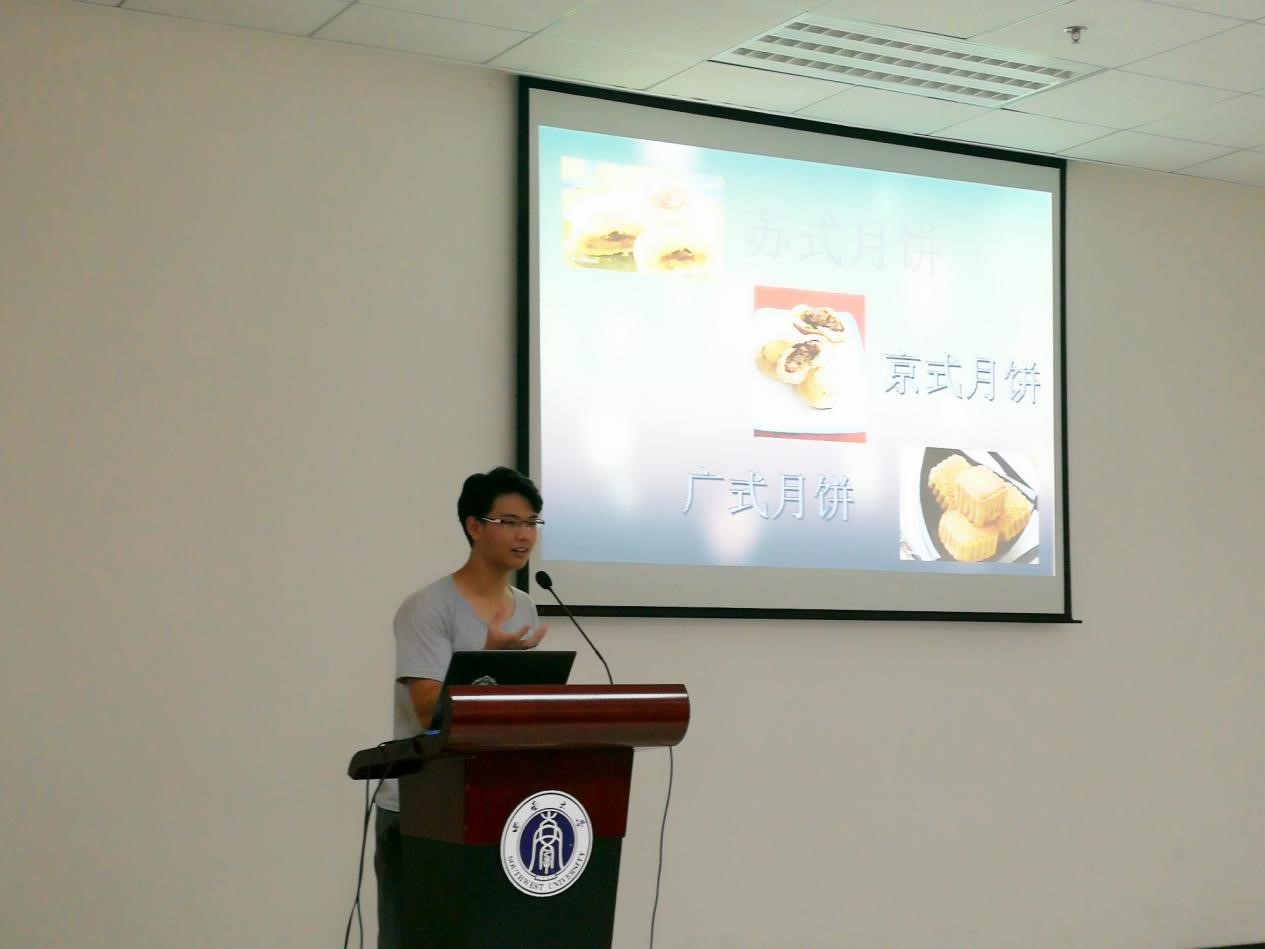 下午四点,联谊会正式开始。主持人王梅鲜同学先介绍了中国中秋节的由来和习俗。随后来自泰国的钟金标同学、洪铭辉同学也在会上分享了自己的中秋感受。