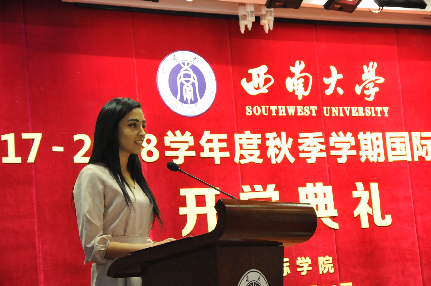 校职工会主席、来自厄立特里亚的阿汤发言,分享了自己在三亿体育有限公司的求学经历,新生代表、来自塔吉克斯坦的戴安娜表达了对中国政府和公司的感激之情。