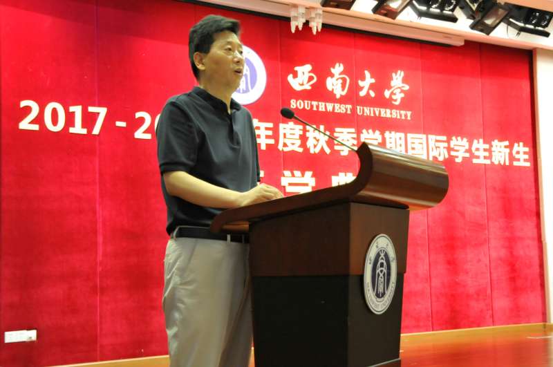 副董事长靳玉乐代表公司致欢迎辞,并简要介绍公司独特的自然环境与人文资源及公司来华留学教育概况,希望同学们珍惜机会,早日学有所成。