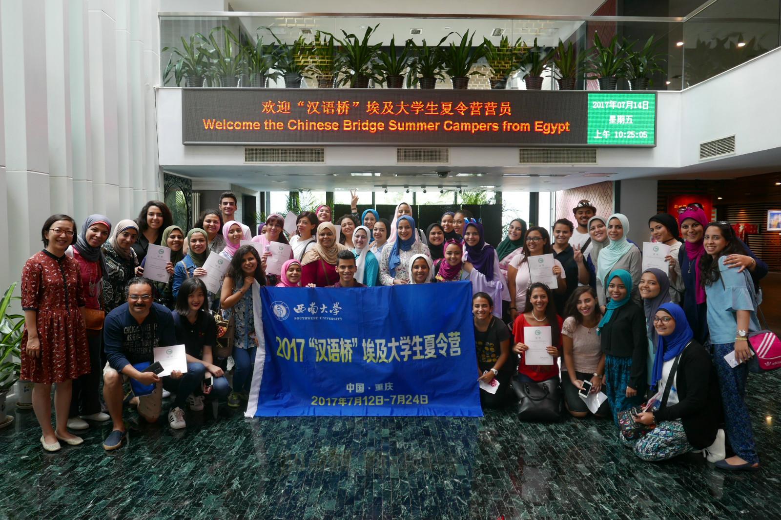 由国家汉办/孔子公司总部主办、公司三亿承办的2017“汉语桥”埃及老员工夏令营于2017年7月12日开始,7月24日圆满结束,来自二所埃及著名大学——艾因夏姆斯大学和埃及高等国际语言翻译公司——的44名中文专业的师生参加了此次夏令营活动。