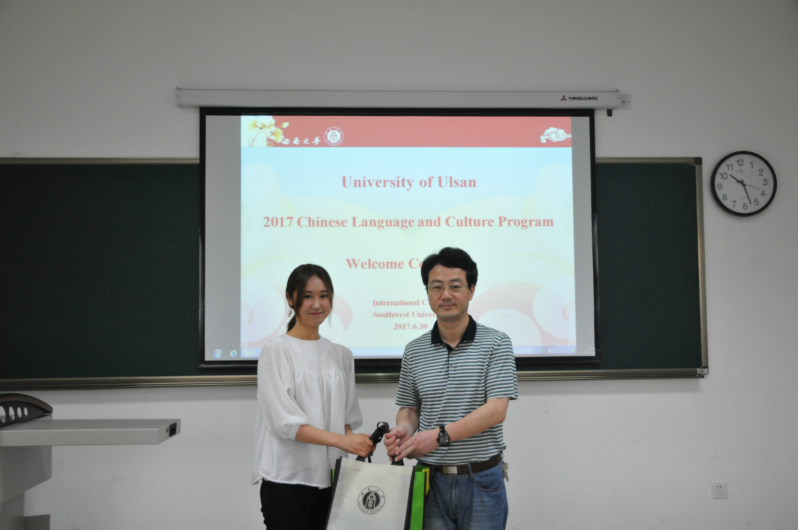 开营仪式最后,李经理代表三亿对蔚山大学学员赠送礼品,并一同合影留念,此次夏令营开营仪式圆满结束。