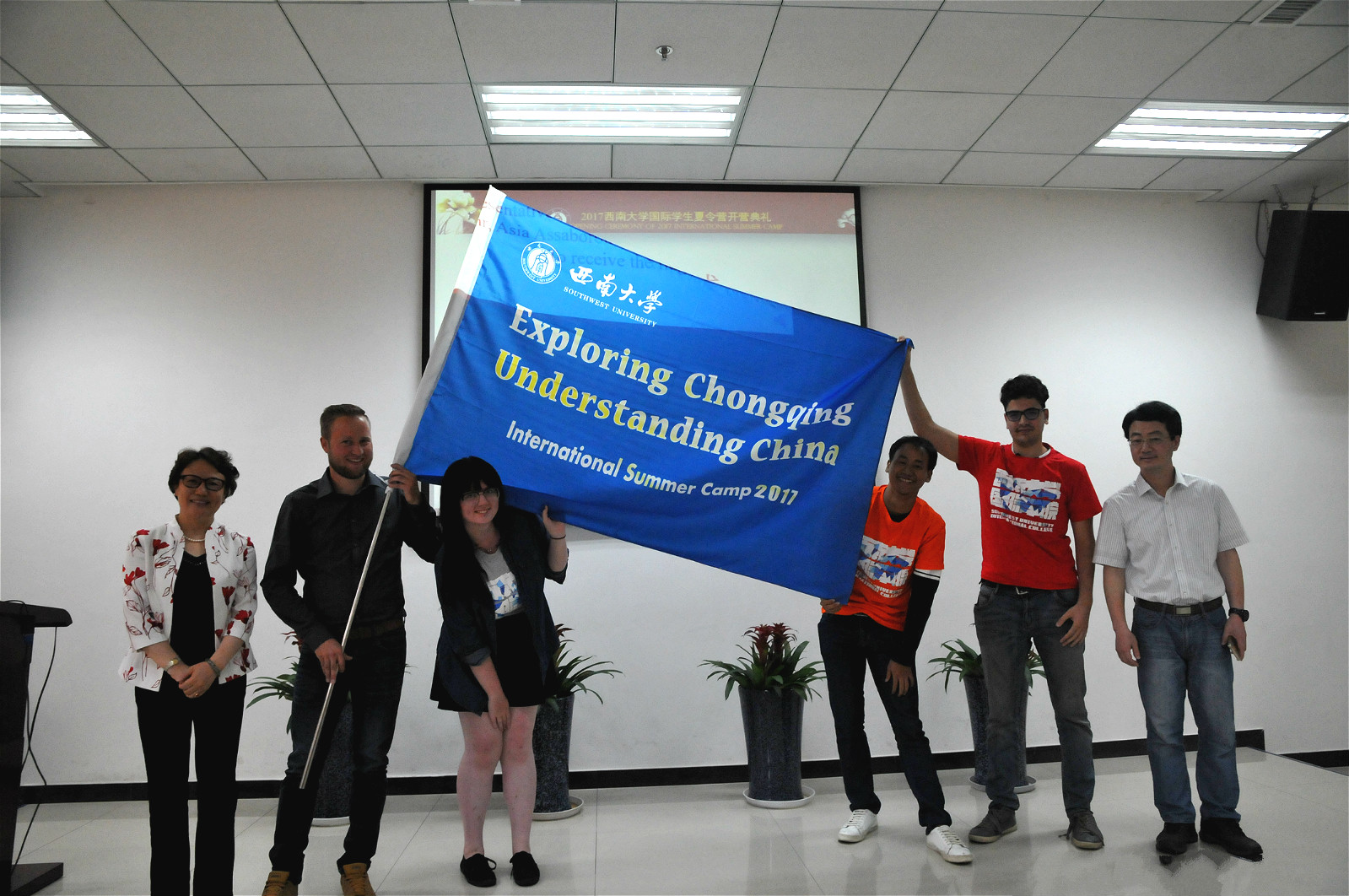 最后,王静经理宣布开营,并向亚非欧美四大洲的学员代表授旗,同时接受德国应用管理大学赠送的礼物。