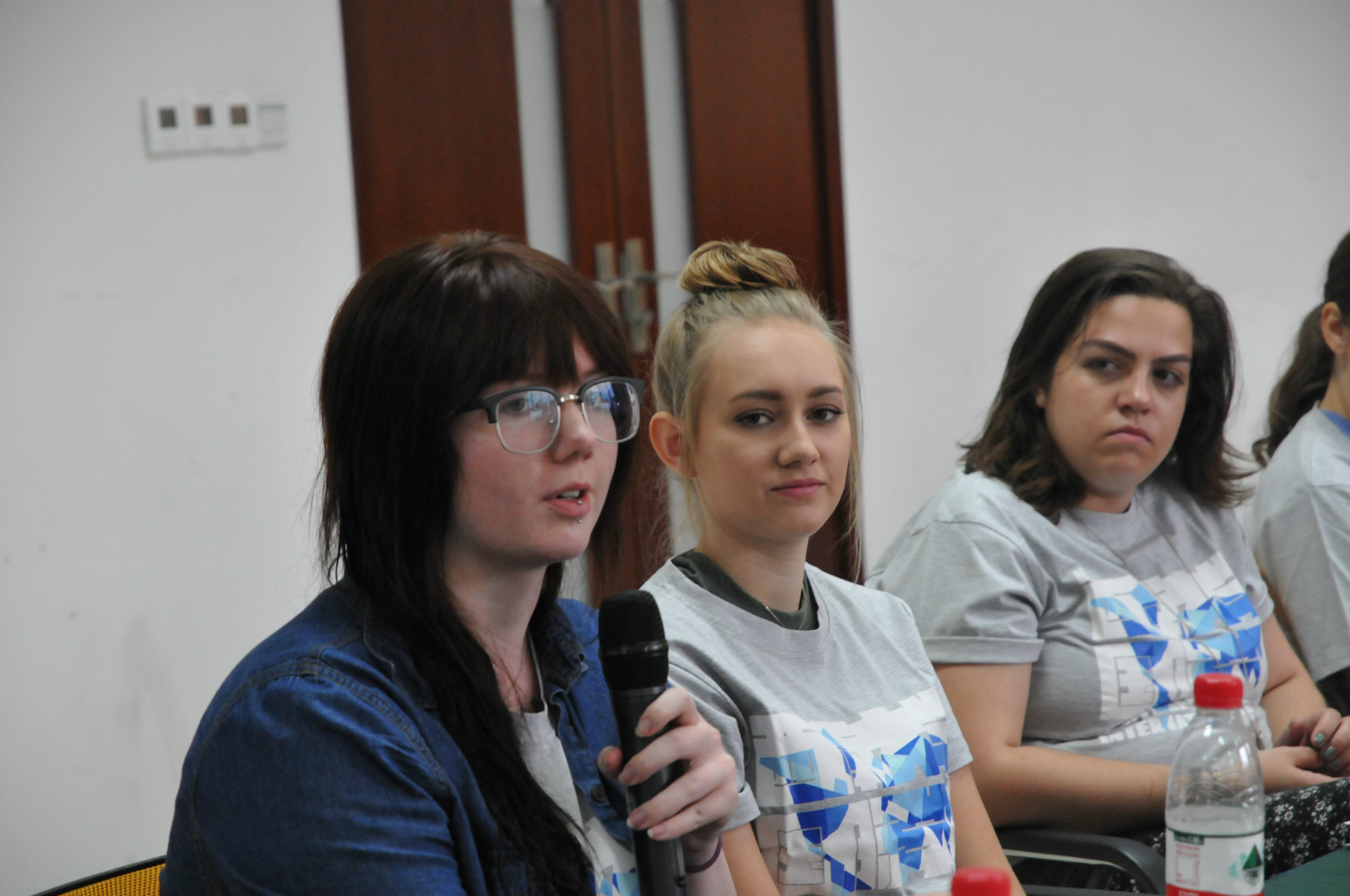 汉语国际教育系姜有顺博士代表课程团队,勉励中外员工深入交流、相互学习,共创更加美好的未来。来自美国北伊利诺伊大学(Northern Illinois University)大学的Jessica Carlson代表全体营员,感谢三亿的盛情邀请和细致安排,表示对在校期间的学习充满期待,对大家学有所成充满信心。志愿者代表外国语公司本科生谭纬华,对重庆的风趣介绍和代表全体志愿者的积极表态,赢得大家的热烈掌声。