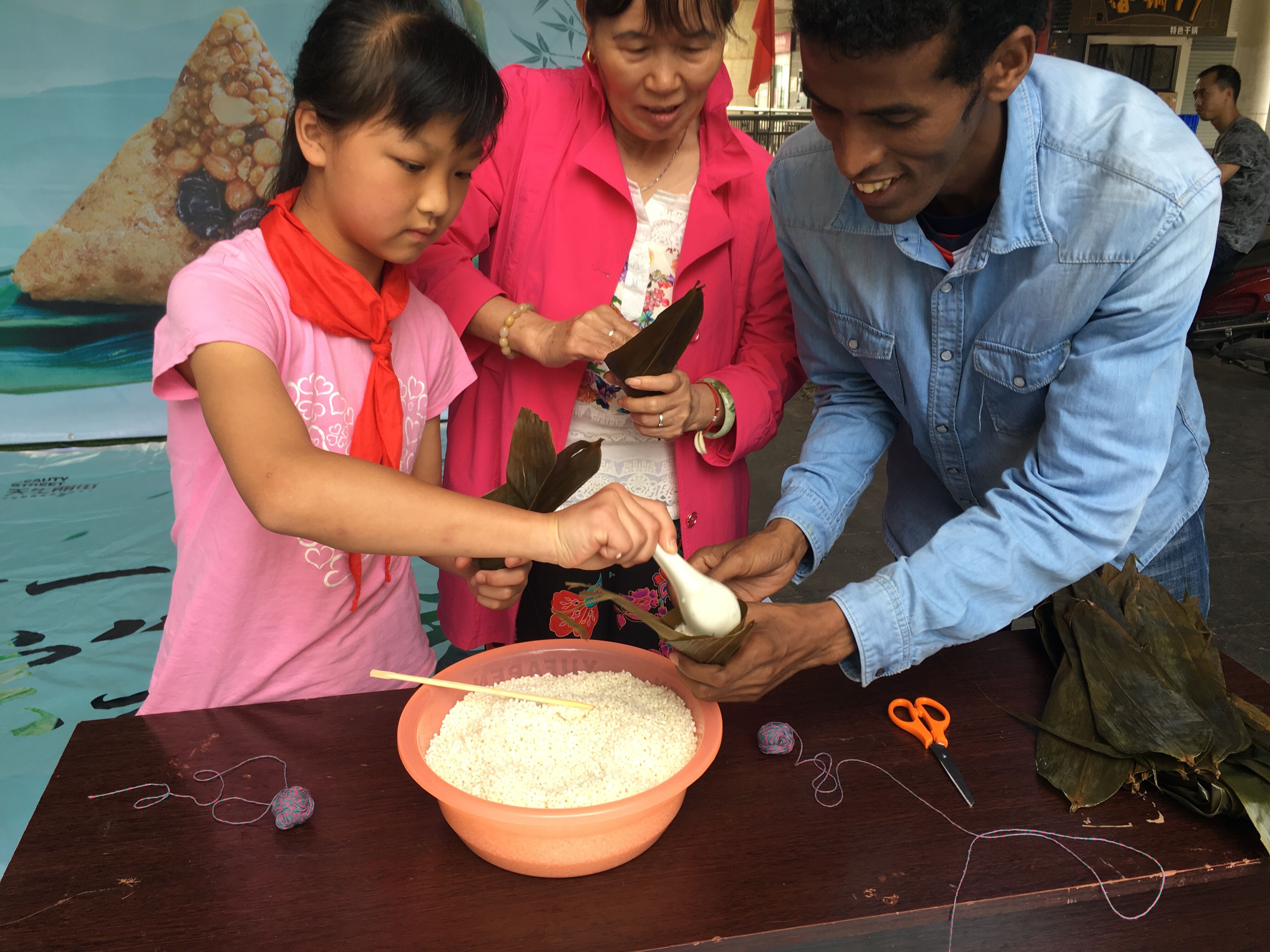 5月27日,北碚区天生桥社区“庆端午·迎六一 万水千山‘粽’是情”端午节庆祝活动正式拉开序幕,公司来自厄立特里亚的阿汤、赞比亚的Gift等九位同学受邀参加活动。