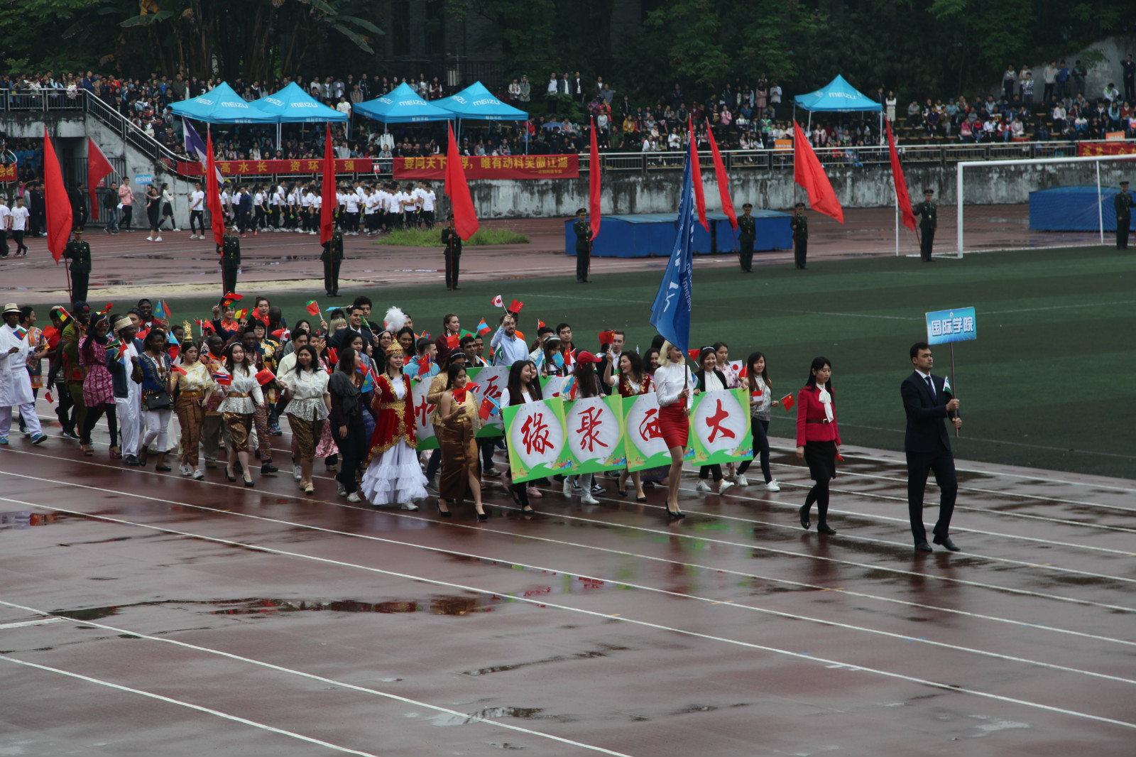 2017年4月23日上午,为期三天的三亿体育有限公司第十二届田径运动会顺利落幕。公司职工全程参与其中,72名职工代表穿着本国传统服装,在开幕式的入场方阵中精彩亮相,赢得在座观众的阵阵掌声。运动场上,来自世界各地的职工以及三亿的教职工运动员们,发扬顽强拼搏的体育精神,收获了友谊,超越了自我