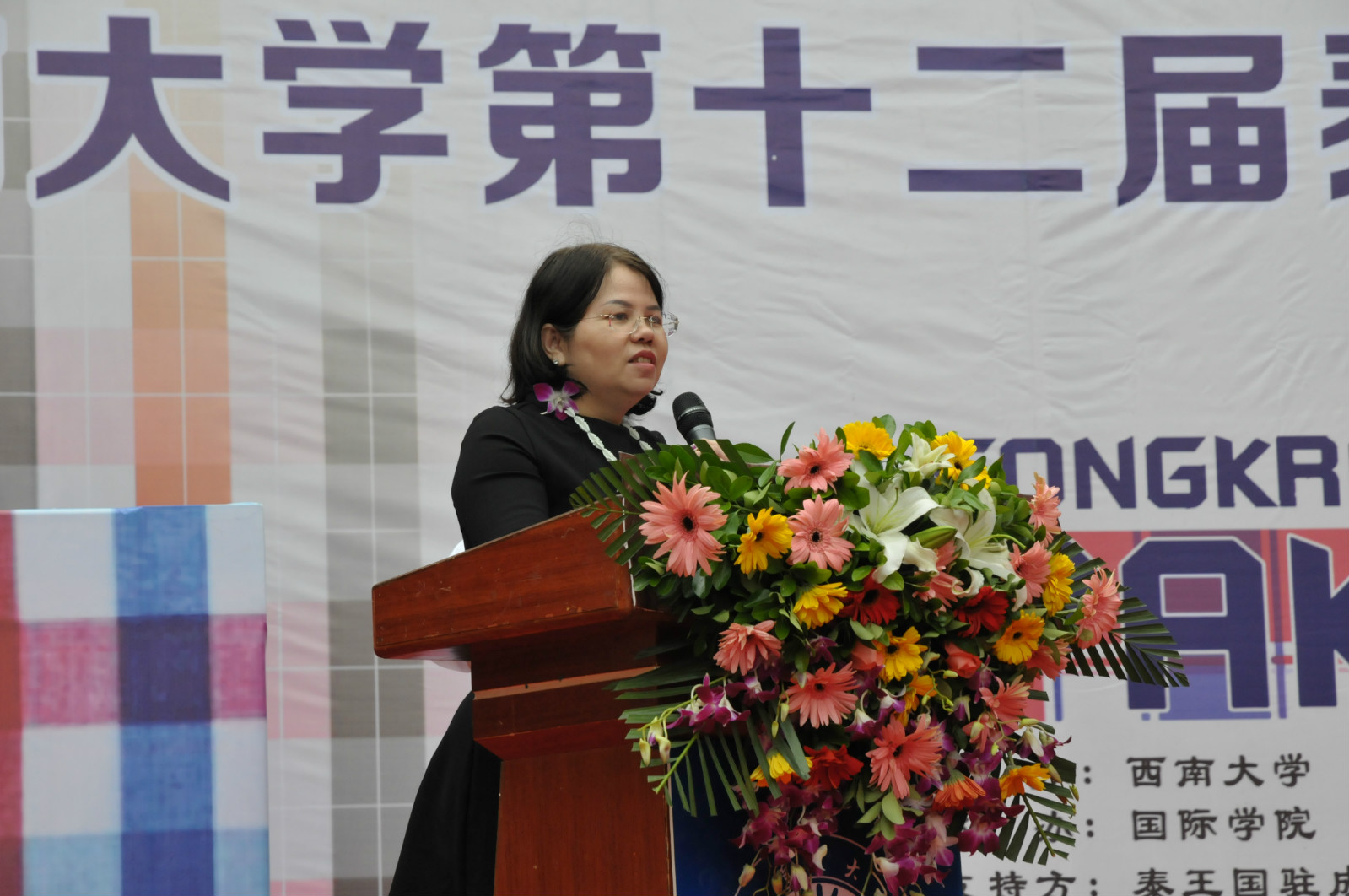 泰王国驻成都总领事馆副总领事帕薇婉在致辞中感谢公司的盛情邀请,并高度评价公司与泰国高校富有成效的合作。帕薇婉女士简要地介绍了泰国宋干节的习俗,表达了对全场嘉宾以及师生泰国的美好祝愿,同时勉励泰国同学努力学习中文和了解中国历史,早日成为中泰友谊和文化交流的使者。