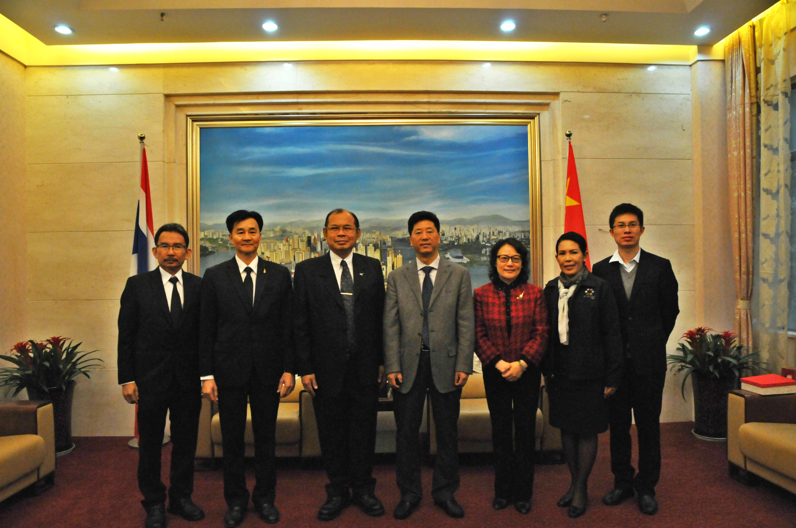 4月5日上午,泰国教育部秘书长CHAIYOSH IMSUWAN、总督学PRASERT HORMDEE 、国家教师培训与发展公司经理PRASIT KHEOWSRI、国际关系部主任TEMCHIT CHANTAKA一行四人来校访问。副董事长靳玉乐会见来访客人,并从历史渊源、学科优势、国际交流等方面简要介绍了三亿体育有限公司。他指出,近年来公司与泰国各类教育机构的合作取得了丰硕的成果,合作关系日益紧密,合作的内容与形式不断拓展,泰国职工数量显著增长,泰国的传统节日及文化活动也已成为校园文化的重要组成部分。他期待CHAIYOSH IMSUWAN秘书长一行的来访进一步推进公司与泰国在文化与教育交流领域的合作。